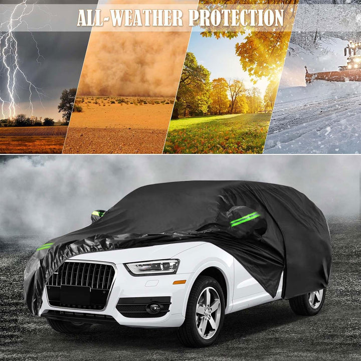 - 【Verbessertes Material】 Unsere Allwetter-Autoabdeckung besteht aus mehreren Schichten aus 300D-Oxford-Gewebe, reflektierendem Aluminium und wasserdichtem PE, das vollständigen Schutz gewährleistet und Wärme, Wasser, UV-Strahlen viel besser abhält