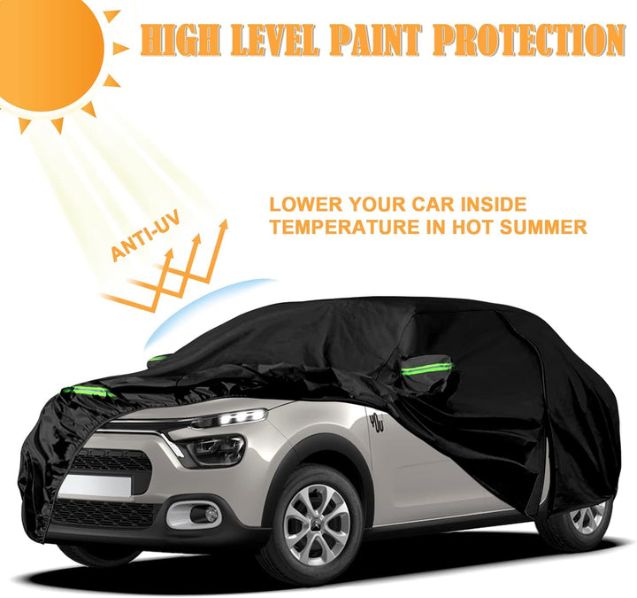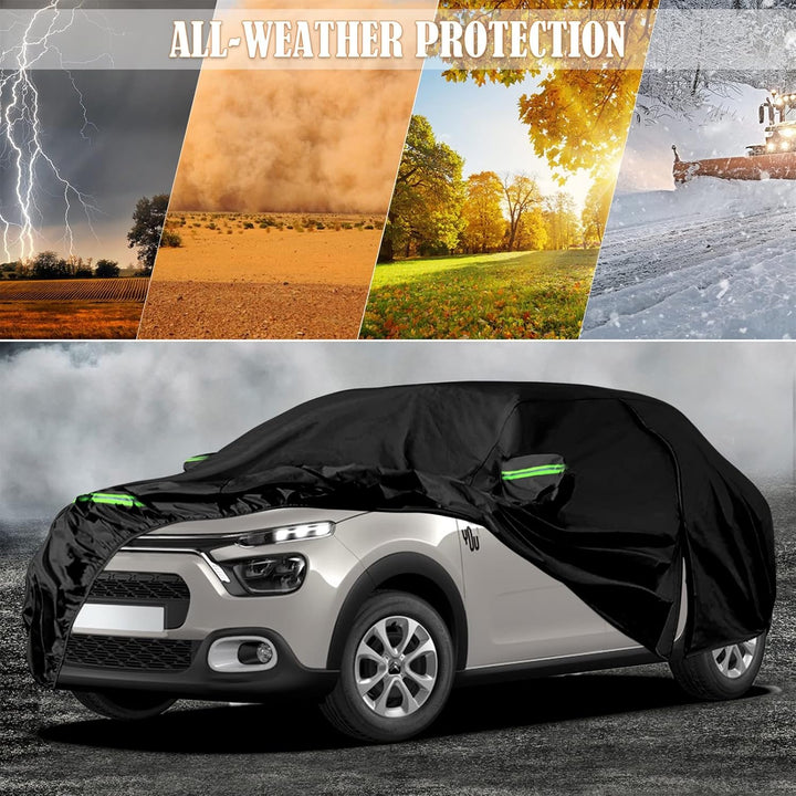 - 【Verbessertes Material】 Unsere Allwetter-Autoabdeckung besteht aus mehreren Schichten aus 300D-Oxford-Gewebe, reflektierendem Aluminium und wasserdichtem PE, das vollständigen Schutz gewährleistet und Wärme, Wasser, UV-Strahlen viel besser abhält