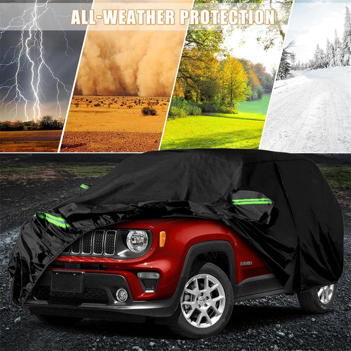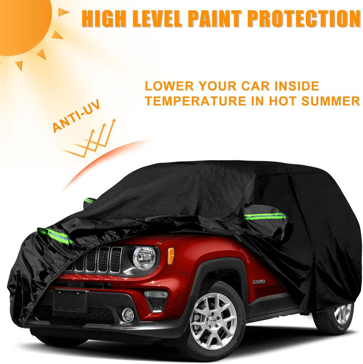 - 【Passgenau】 Die wasserdichte Autoabdeckung ist massgeschneidert, kompatibel mit Jeep Renegade 2014-2024, es ist notwendig, Ihr Automodell zu überprüfen, bevor Sie eine Bestellung aufgeben.