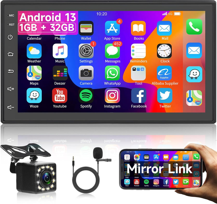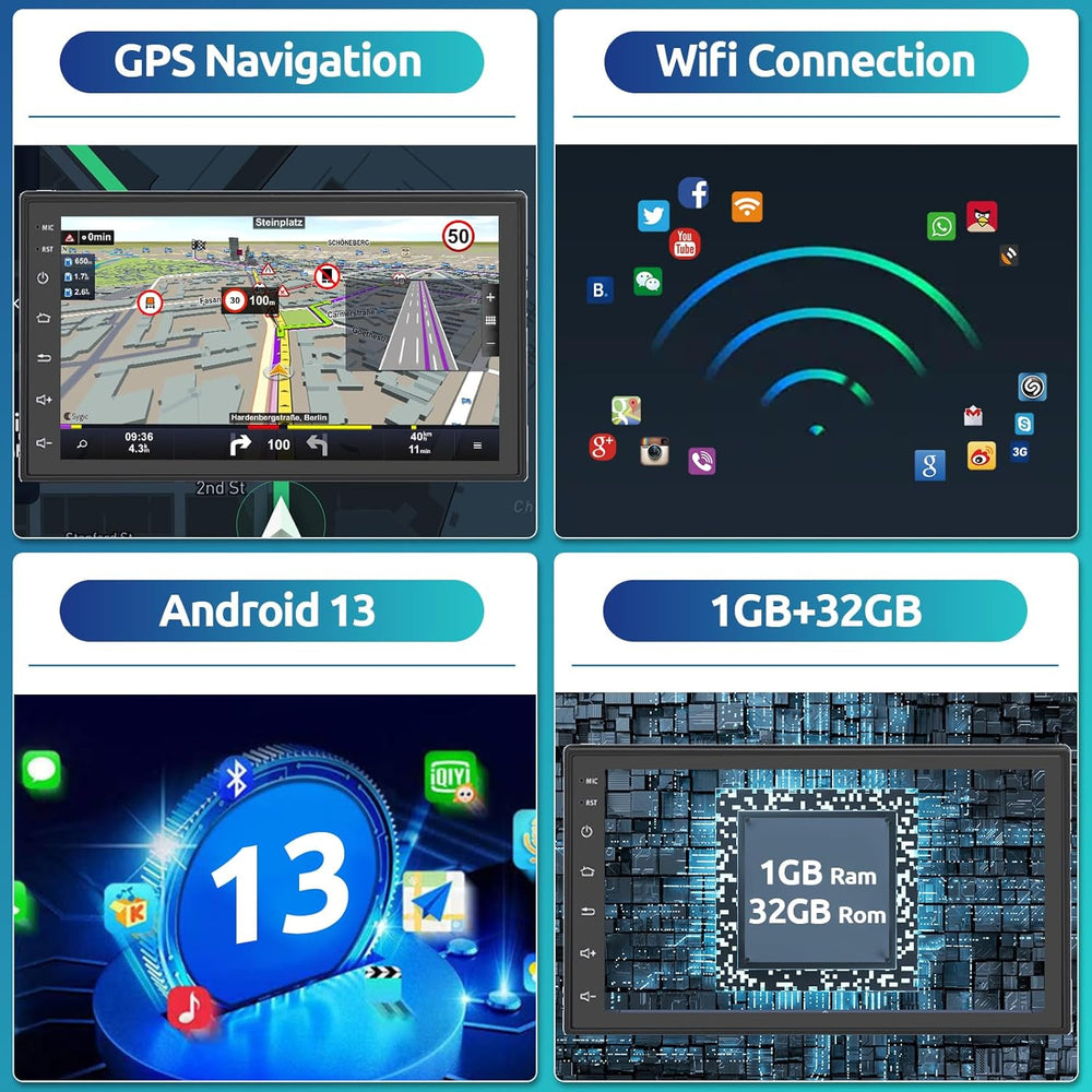 - 【1G + 32G Android 13 Autoradio mit Wifi+Hotspot Receiver】Quad-Core, 1GB RAM +32GB ROM Speicher ermöglicht Ihnen das Herunterladen und Installieren verschiedener Apps, wie YouTube, Tiktok, Spotify und mehr. 7 Zoll HD IPS Touchscreen, 1024*600