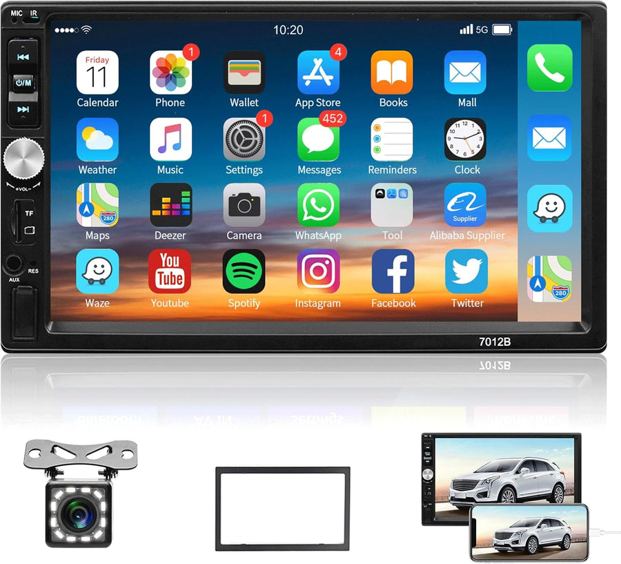 - Doppel-Din-Autoradio: Auto stereo radio mit hochauflösendem 7-Zoll-Touchscreen für mehr Funktionen, Sie können das Autoradio mit einer Fernbedienung steuern, um Songs zu wechseln oder andere Funktionen zu verwenden (Hinweis: Eine Fernbedienung ist im Lieferumfang enthalten). Einbaugrösse: 178 * 100 mm, Geeignet für Universalautos, bitte messen Sie vor dem Kauf die Grösse Ihres Armaturenbretts.