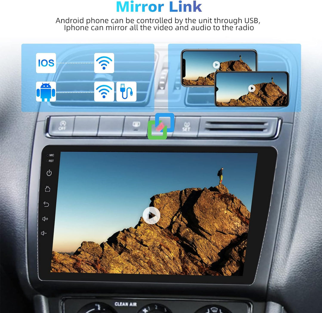 - 【Mirror Link Funktion & Rückfahrkamera-Eingang】Verbinden Sie Ihr Smartphone über WiFi oder USB-Kabel mit diesem Autoplayer, es unterstützt iOS-Telefon Einweg-Projektion zum Autoradio, Android-Telefon Zweiweg-Verbindung. Das Rückbild wird