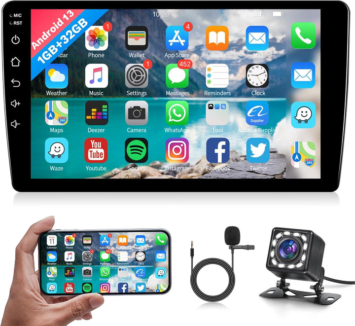 - 【Hardware und System】Android 13+WiFi+Bluetooth+FM Radio+1GB RAM/ 32GB ROM+GPS Receiver+Rückfahrkamera (im Lieferumfang enthalten). 9" IPS Touchscreen mit 1024*600 hoher Auflösung. Tiefgreifende Anpassungen und ein schlankes System funktionieren