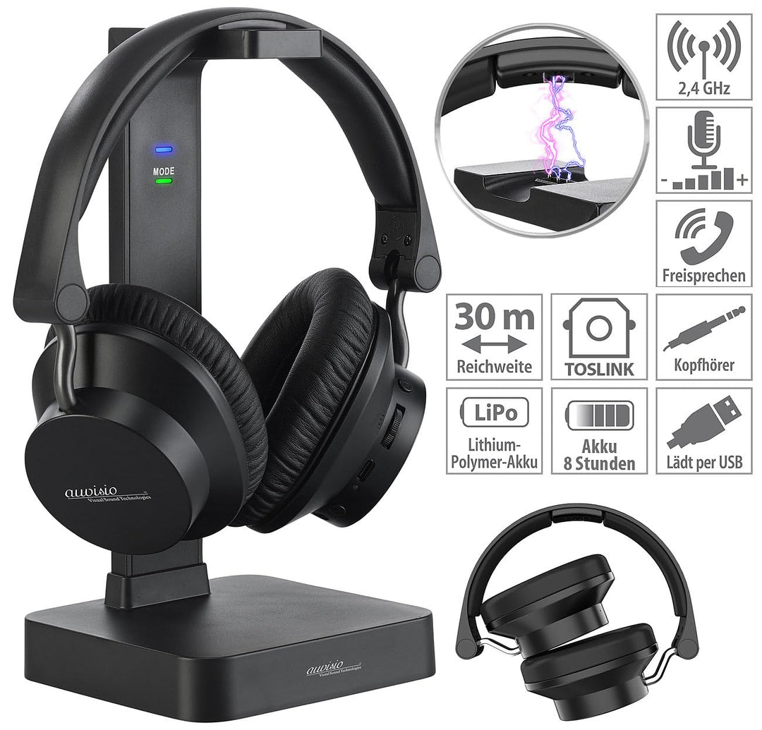 auvisio TV Kopfhörer: Digitaler Funkkopfhörer & Hörverstärker, 98 db TV-Modus, Ton-Balance (Kopfhöre