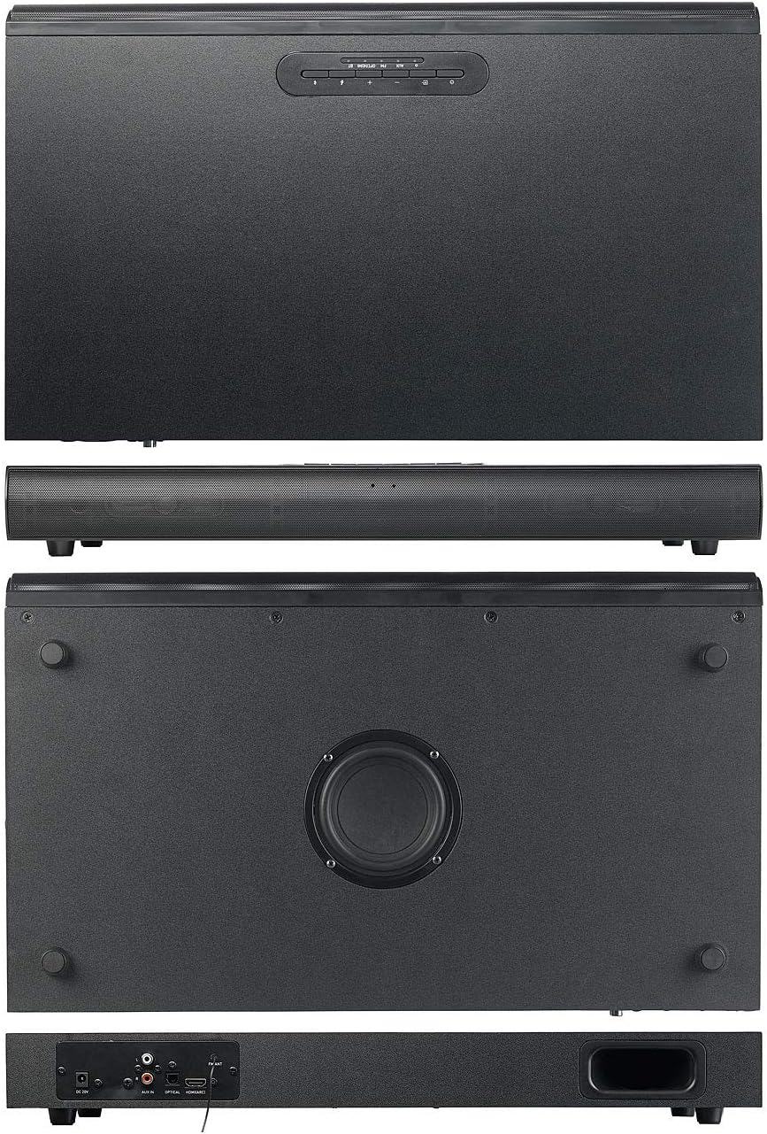 - Bluetooth 5 + EDR für Musik-Streaming von Smartphone und Bluetooth-fähigen Audiogeräten, bis 40 m Reichweite • Effektives Tiefton-System für druckvolle Bass-Wiedergabe: Subwoofer im Boden mit Bass-Reflexrohr auf der Rückseite • Anschlüsse
