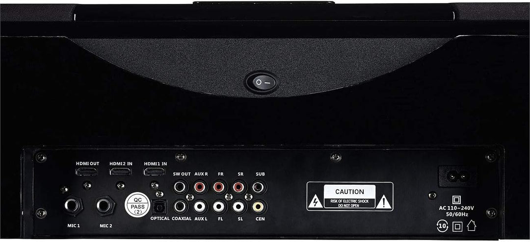 - 15 Lautsprecher in 5 Gruppen mit separater Ansteuerung für Front und Center (je 2 Mitteltöner + 1 Hochtöner), Surround (2 Mitteltöner) und Subwoofer (2 Tieftöner) • Vocal-Cut-Funktion für Karaoke-Musik-Wiedergabe: Anschluss für Mikrofon mit