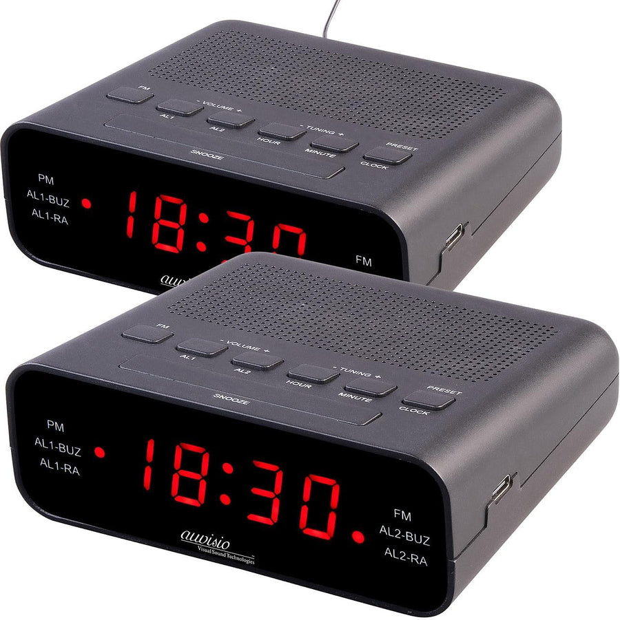 auvisio Uhrenradios Radiowecker: UKW-Radiowecker mit 2 Weckzeiten und LED-Anzeige, Schlummer, 2er-Se