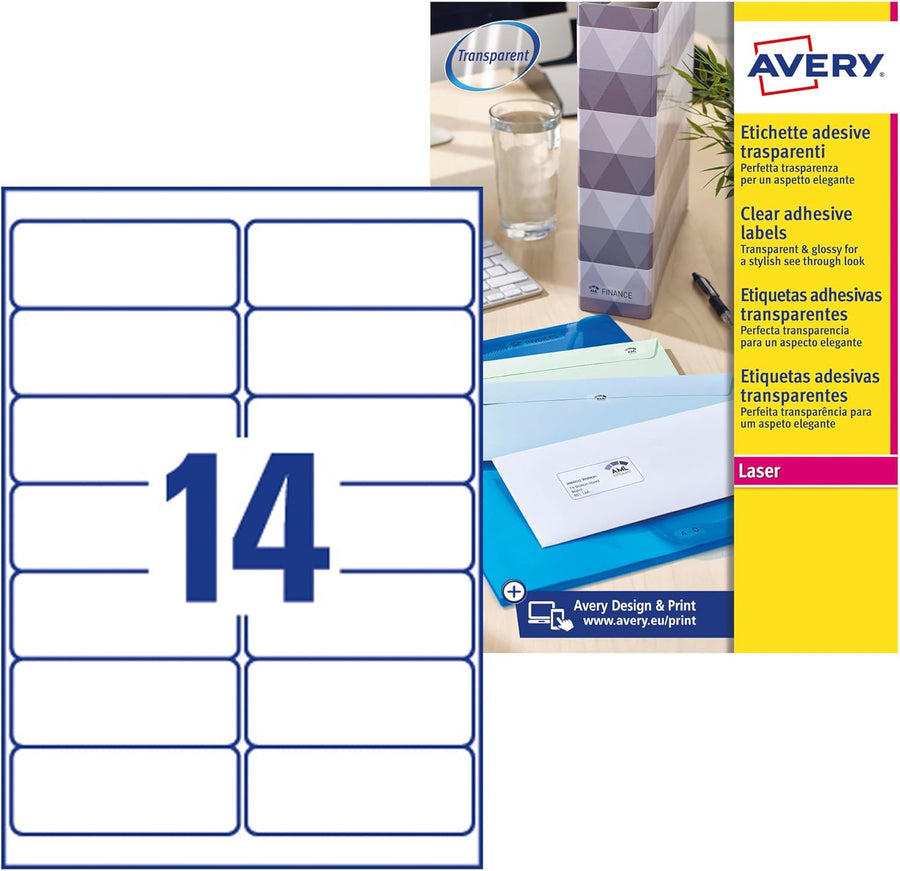 Avery Adressetiketten für Laserdrucker 14 pro Blatt 99,1 x 38,1 mm 350 Stück transparent