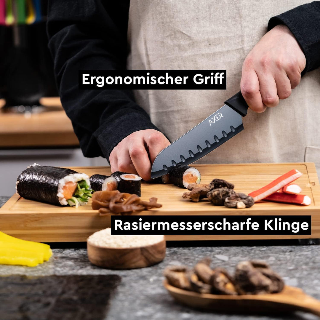 - ✔ ERGONOMISCH UND RUTSCHFEST: Der Griff des kochmesser set ist so profiliert, dass die Arbeit einfach und mühelos ist. Der messer kunststoffgriff ist sich weich anfühlt, wasserfest und rutschfest ist