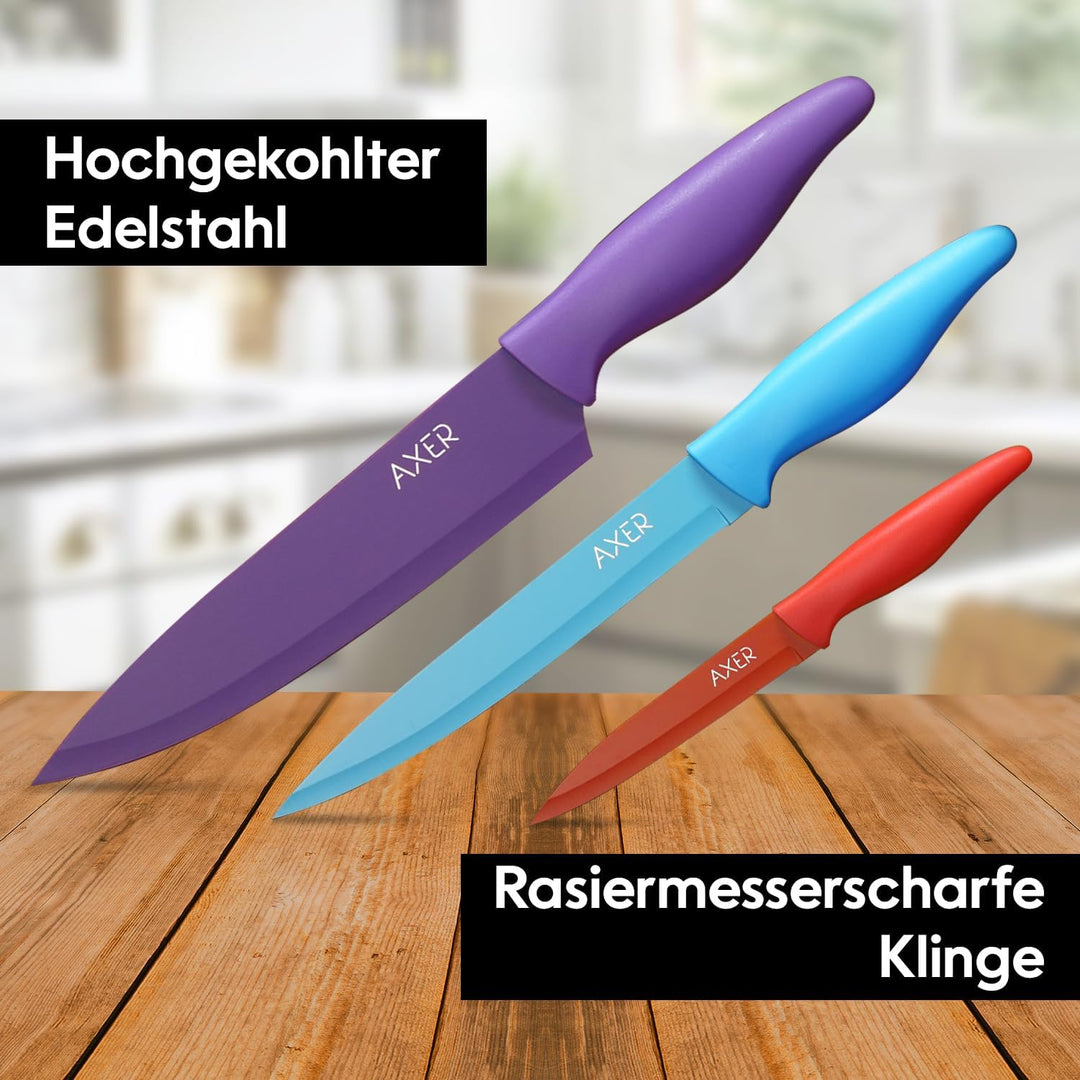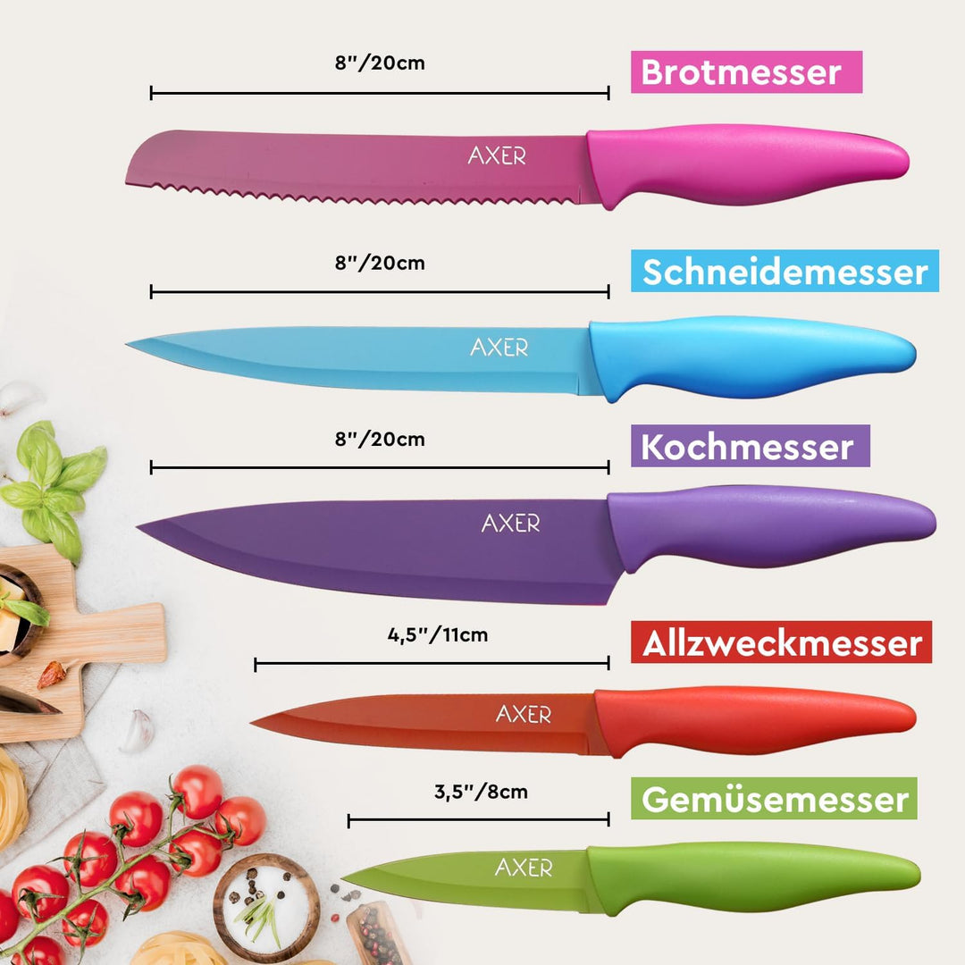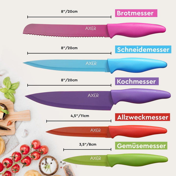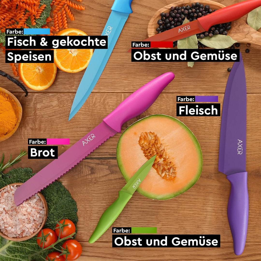 - 🔪 FARBCODIERUNG - Die Küchenmesser verfügen über mehrfarbige Beschichtungen, die einen besseren Schutz vor Rost bieten und das Risiko einer Kreuzkontamination verringern