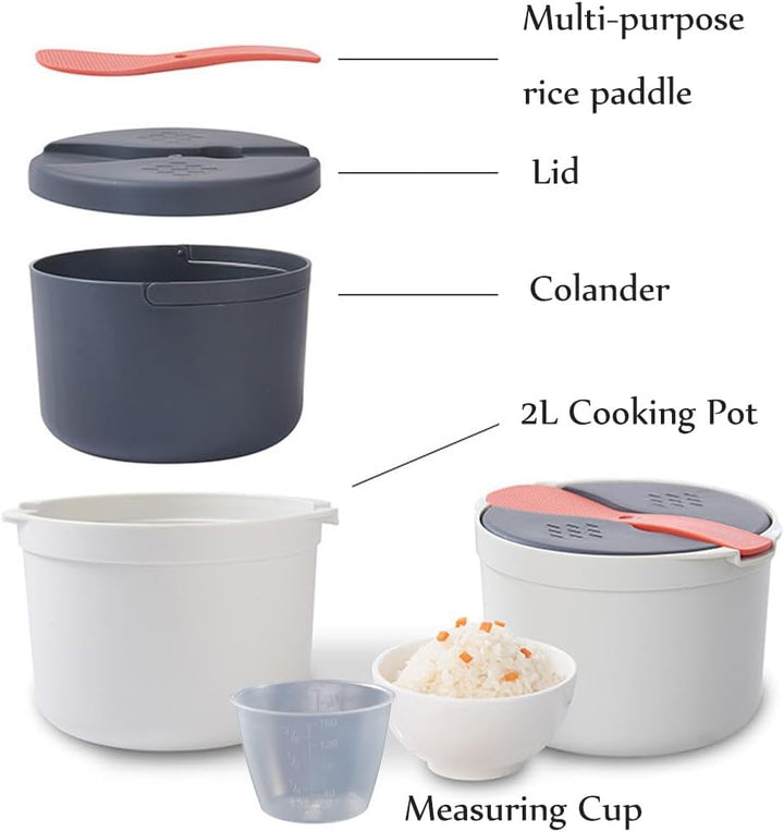 - Das Mikrowellen-Reiskocher-Set enthält einen Reislöffel, einen Deckel, ein Sieb, einen Messbecher und einen Dampftopf für Mikrowellen aller Grössen. Bei Fragen können Sie sich jederzeit gerne an uns wenden.