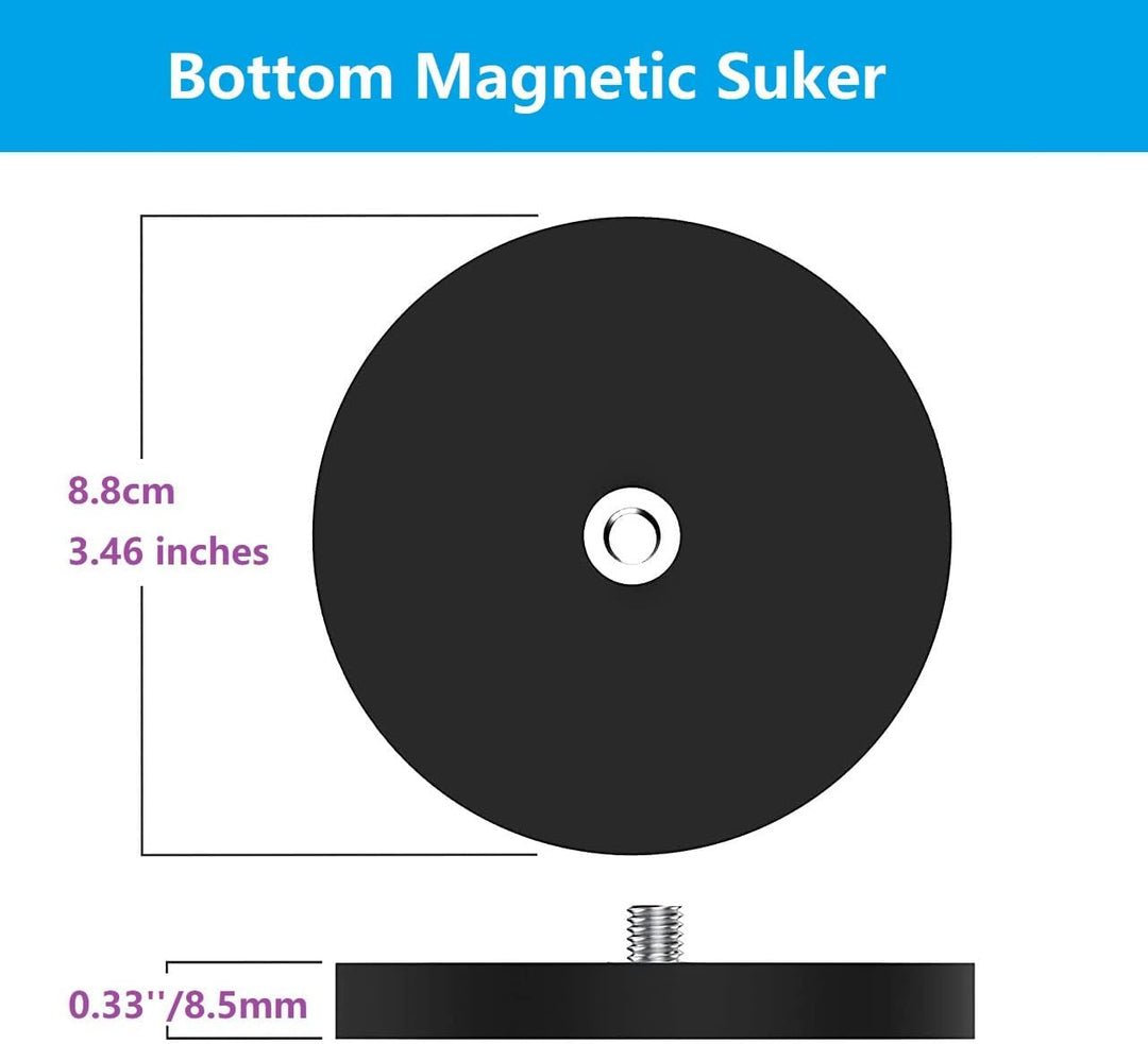 - BTTOM Magnet Saugdurchmesser 8,8 cm (3,46 Zoll); Empfohlene maximale Belastung unter 0,5 kg/1,1 lbs; Top Magnetic Suction Durchmesser: 4,2 cm (1,65 Zoll);