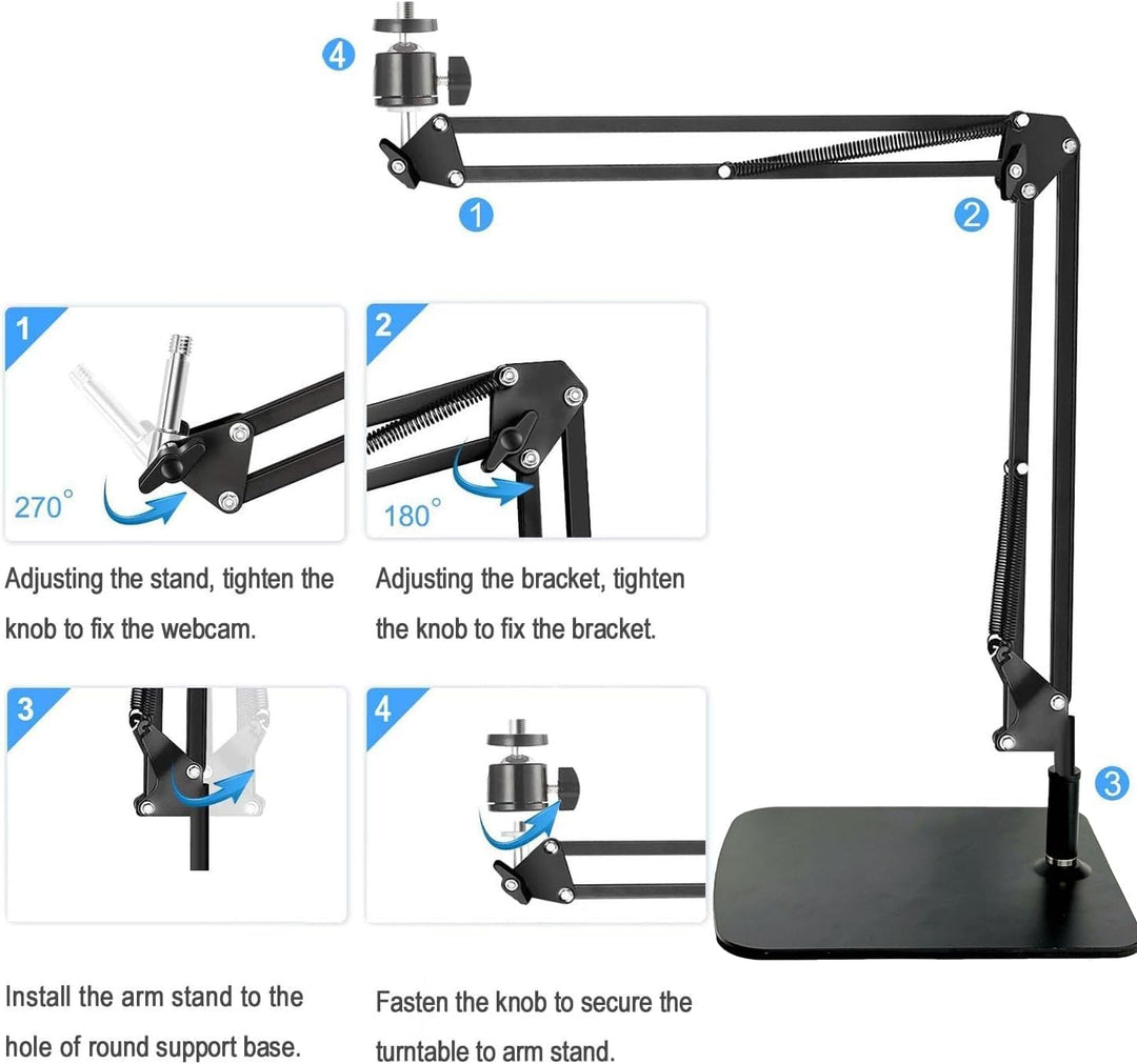 - 【Hohe Qualität】Stabile Ganzmetallstruktur Webcam Stützarm, mit Anti-Rost-Behandlung auf der Oberfläche, hohe Zuverlässigkeit. Doppelstützender massiver Arm und doppelte dicke Federung, kann verhindern, dass die Webcam herunterfällt, hohe