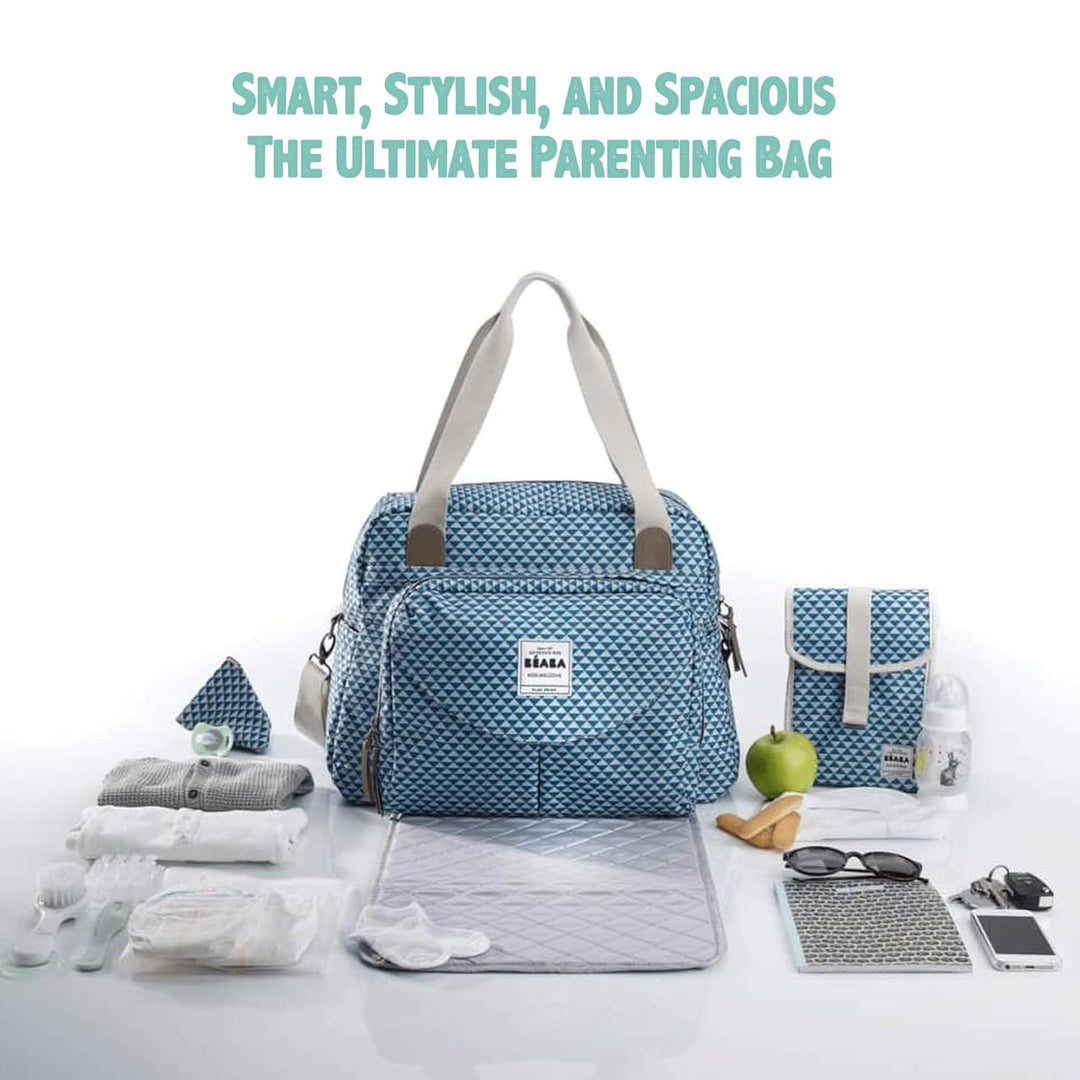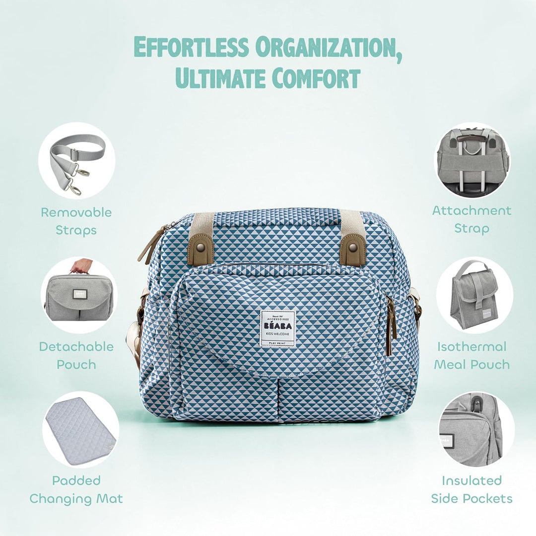 - VIELFÄLTIGE STAUFÄCHER (für Pflegeprodukte, Babynahrung und mit speziellem Elternfach): eine Tasche, in der sich sowohl die von Eltern benötigten Dinge (Handy, Schlüssel, Portemonnaie ...) als auch die des Kindes (Kleidung ...) transportieren lassen