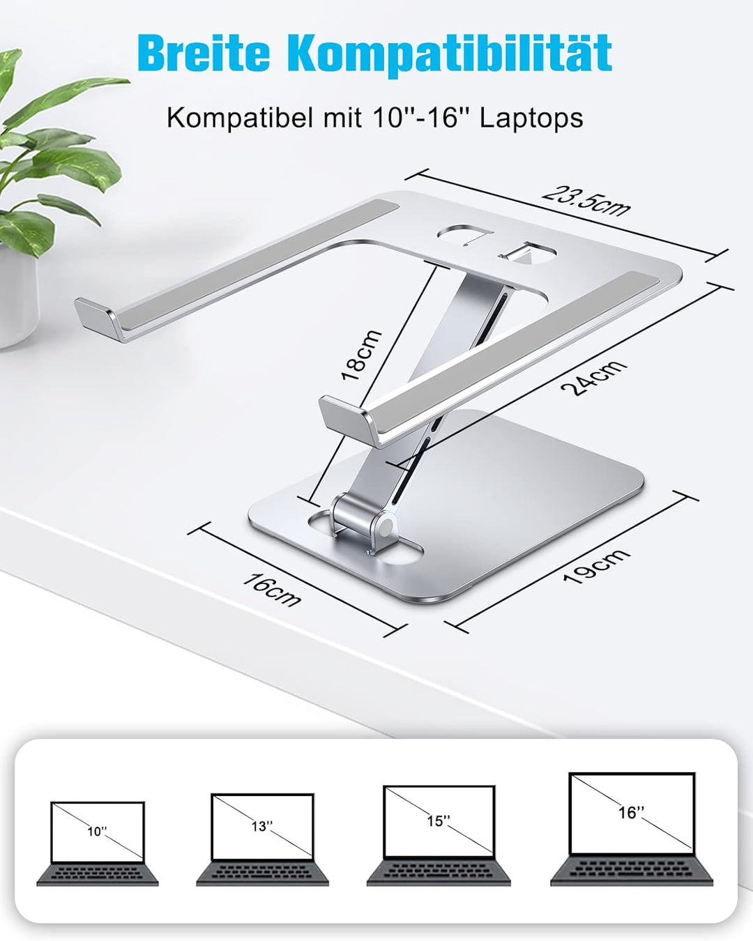 • 【Breit Gerätekompatibel】 Der Laptop Stander passt auf alle Laptops von 10 bis 16 Zoll, wie z.notebooks computers 11 Zoll, 12 Zoll, 13 Zoll, 13.3 Zoll, 14 Zoll, 15 Zoll, 15.4 Zoll, 15.6 Zoll.
