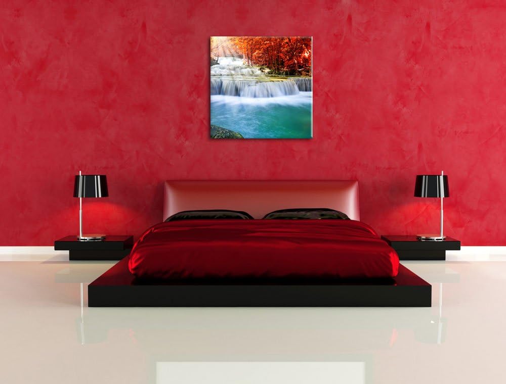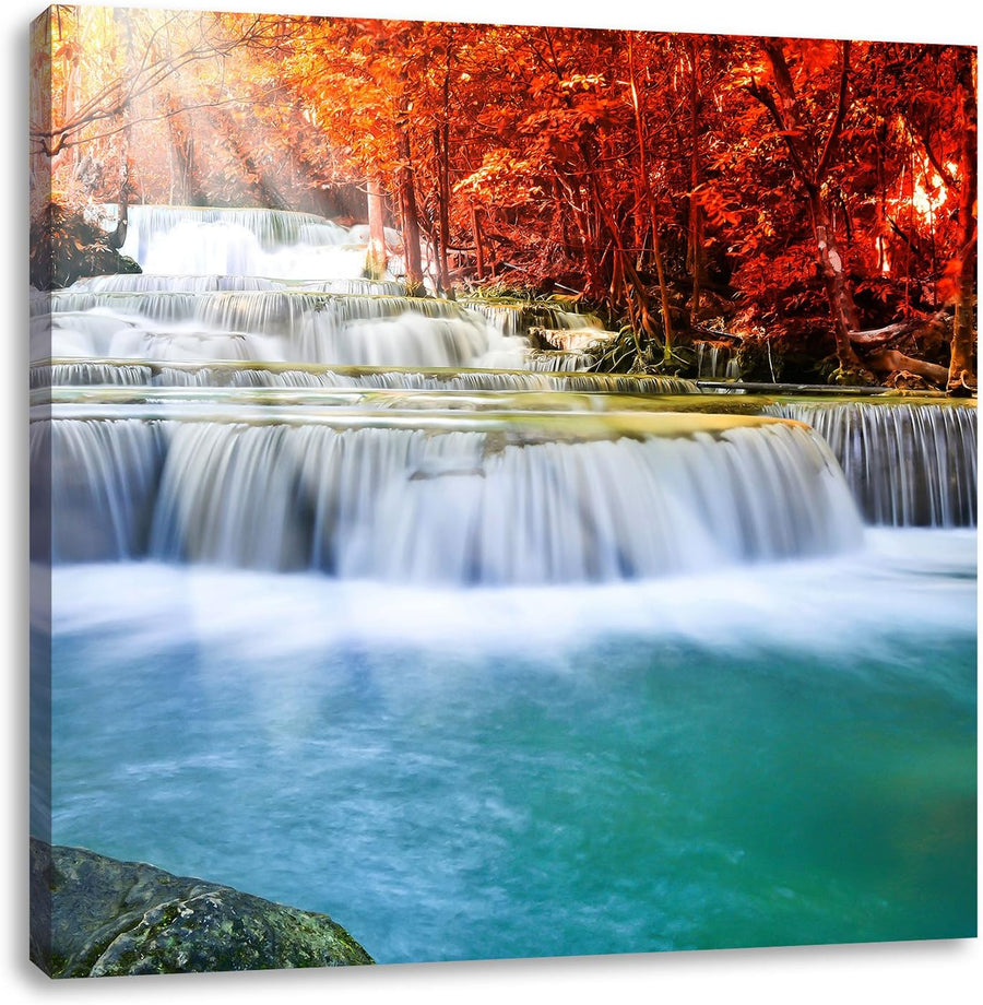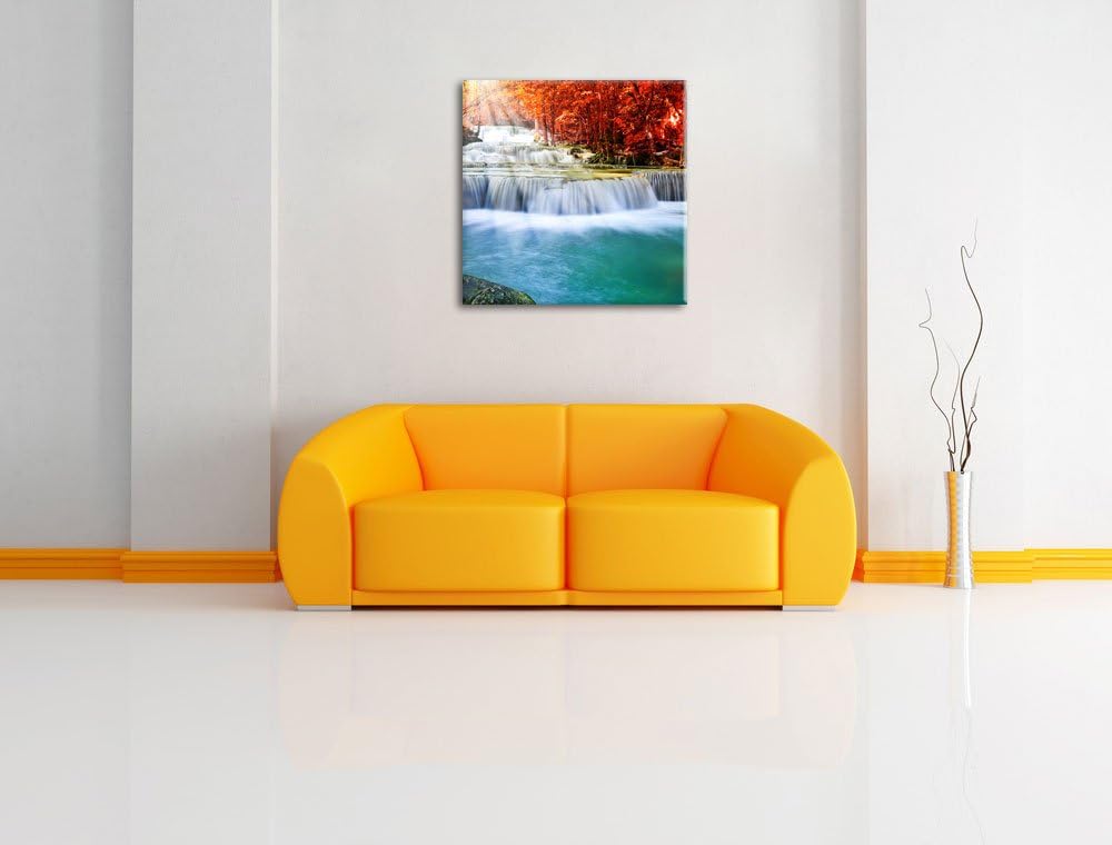 Bach in Herbstlandschaft, Format: 70x70 auf Leinwand, XXL riesige Bilder fertig gerahmt mit Keilrahm