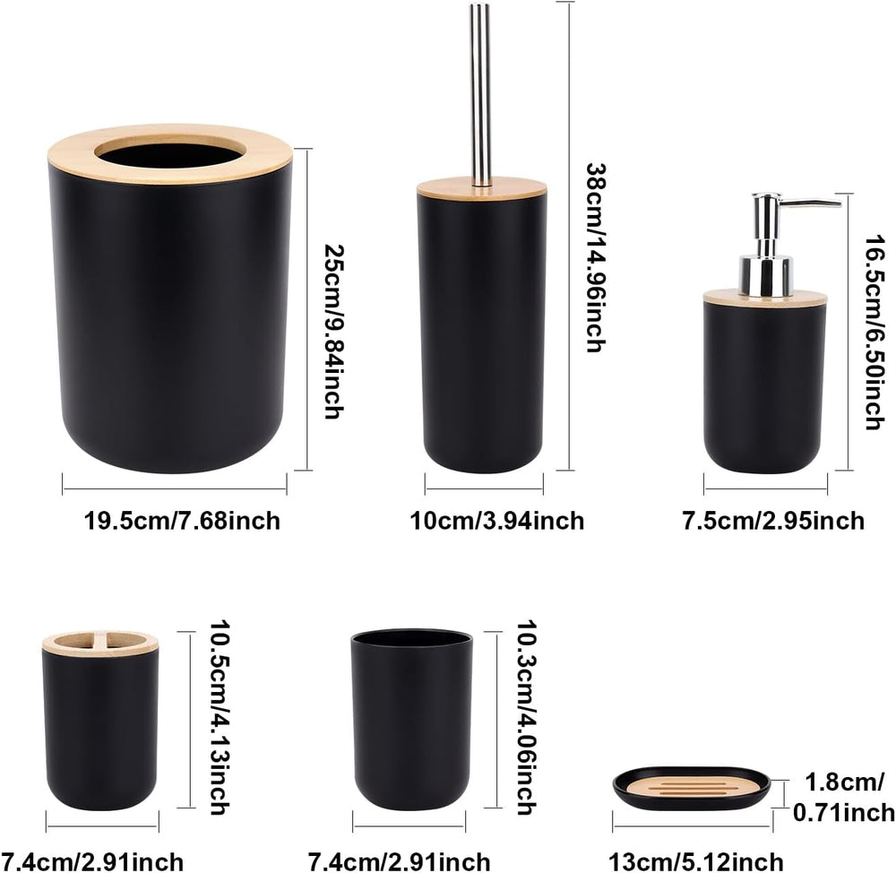 • Badezimmer-Zubehör-Sets: Lotionspender, Seifenhalter, Zahnbürstenhalter, Mülleimer, WC-Bürsten-Set, Spülbecher. Ein zeitgemässes Badezimmer-Set verhindert perfekt Unordnung auf Ihrem Waschraum.