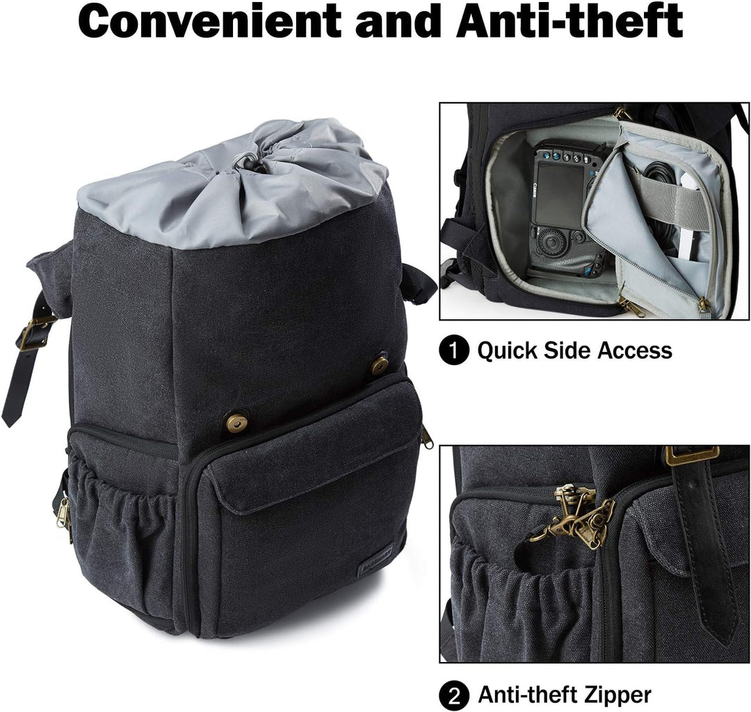 - Fächer - oberer Raum zur Aufbewahrung persönlicher Gegenstände; untere Kamerazone für 1 DSLR-Kamera mit 70-200 mm Objektiv, 3-4 Standardobjektiven, vorderer und innerer Zubehörtasche, Wasserflasche und Stativhalter