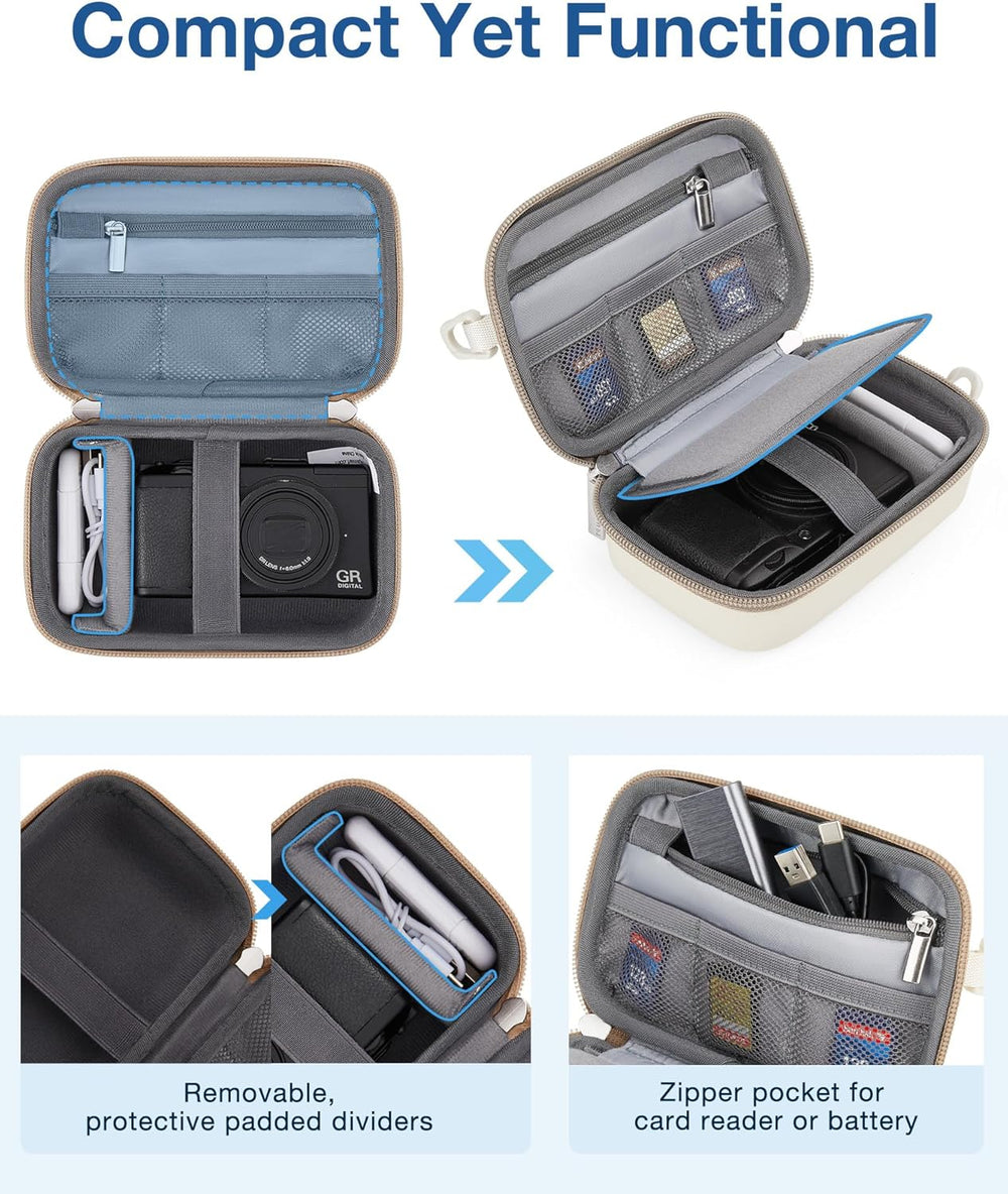 - Mehrere Tragemöglichkeiten:Diese tragbare Kamera Aufbewahrungsbox ist sehr leicht und mit einem abnehmbaren Armband und Schultergurt ausgestattet, die eine bequeme Möglichkeit, jederzeit zu tragen. Sie können die kleine Kameratasche in der Hand, auf