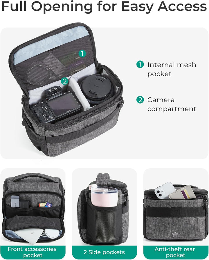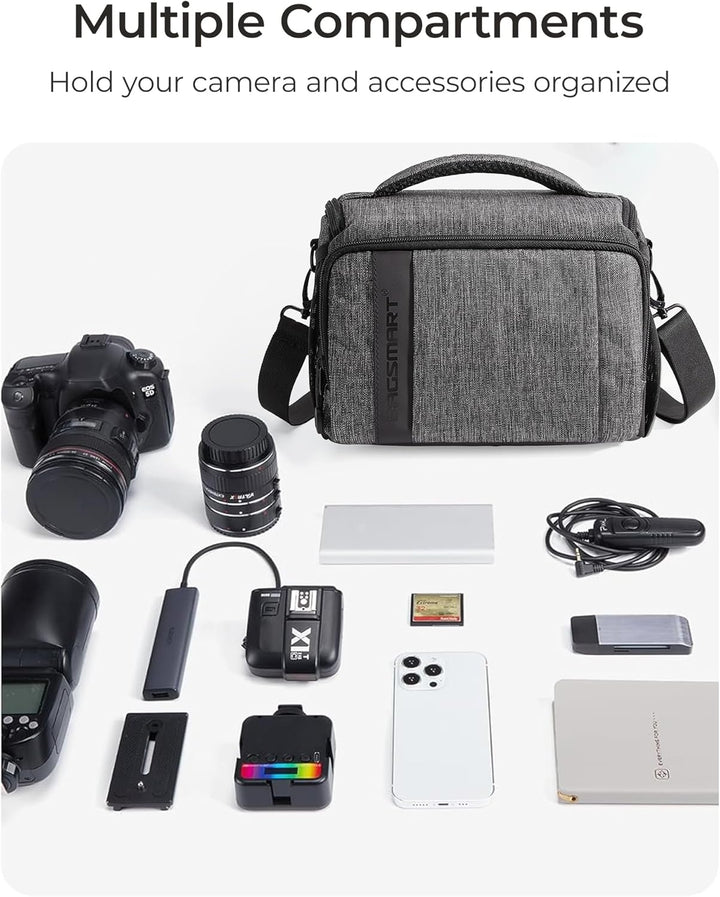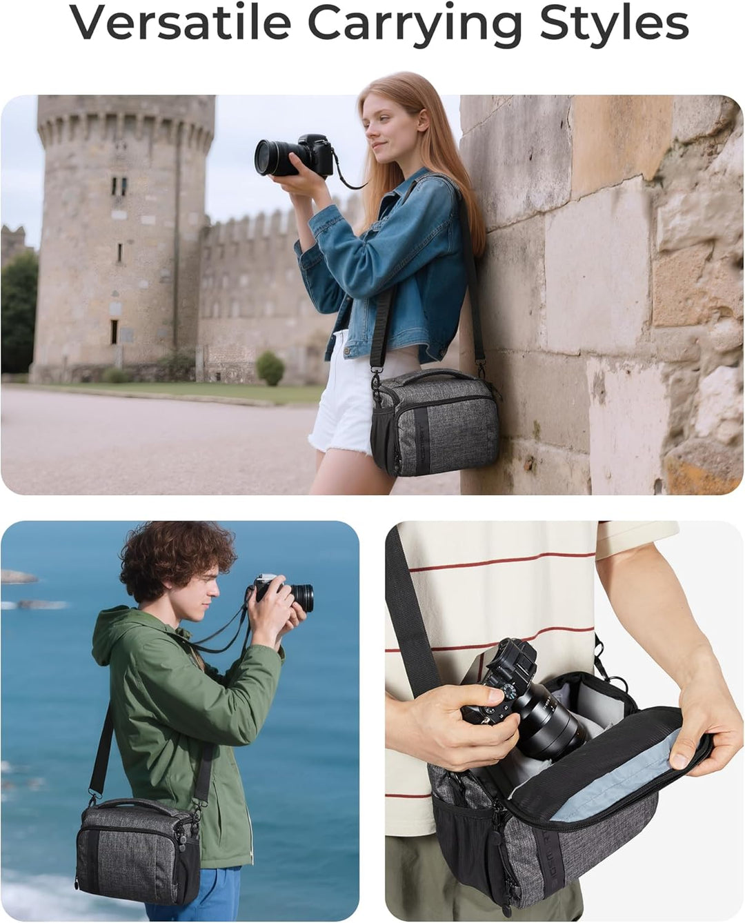 - Viel Platz - Das Hauptfach bietet passenden Stauraum für 1 DSLR und 2 Objektive,aussen und oben zusätzliche Taschen sortieren Zubehörteile z.B.Kabel,Ersatz Akku, Speicherkarte, Ladegerät, seitlche Netztasche aussen für Wasserflasche.