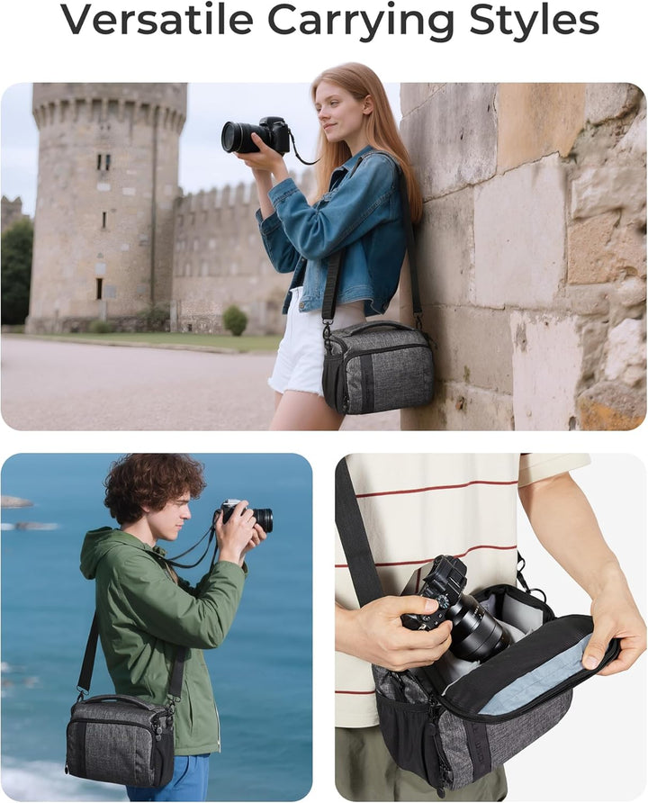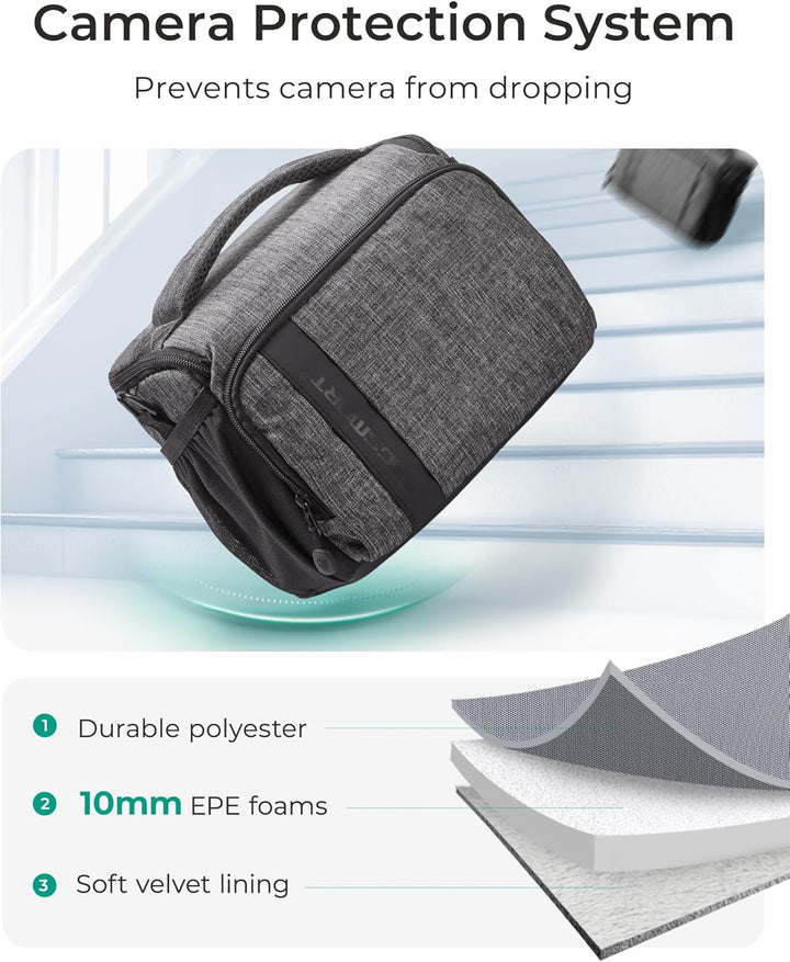 - Ideal für Outdoor-Fototouren - Wasserabweisender Taschenboden, so dass keine Feuchtigkeit nach innen dringt und das Kamera-Equipment beschädigen könnte. Nach der Outdoor-Tour lässt sich der Taschenboden ganz einfach mit einem feuchten Tuch reinigen