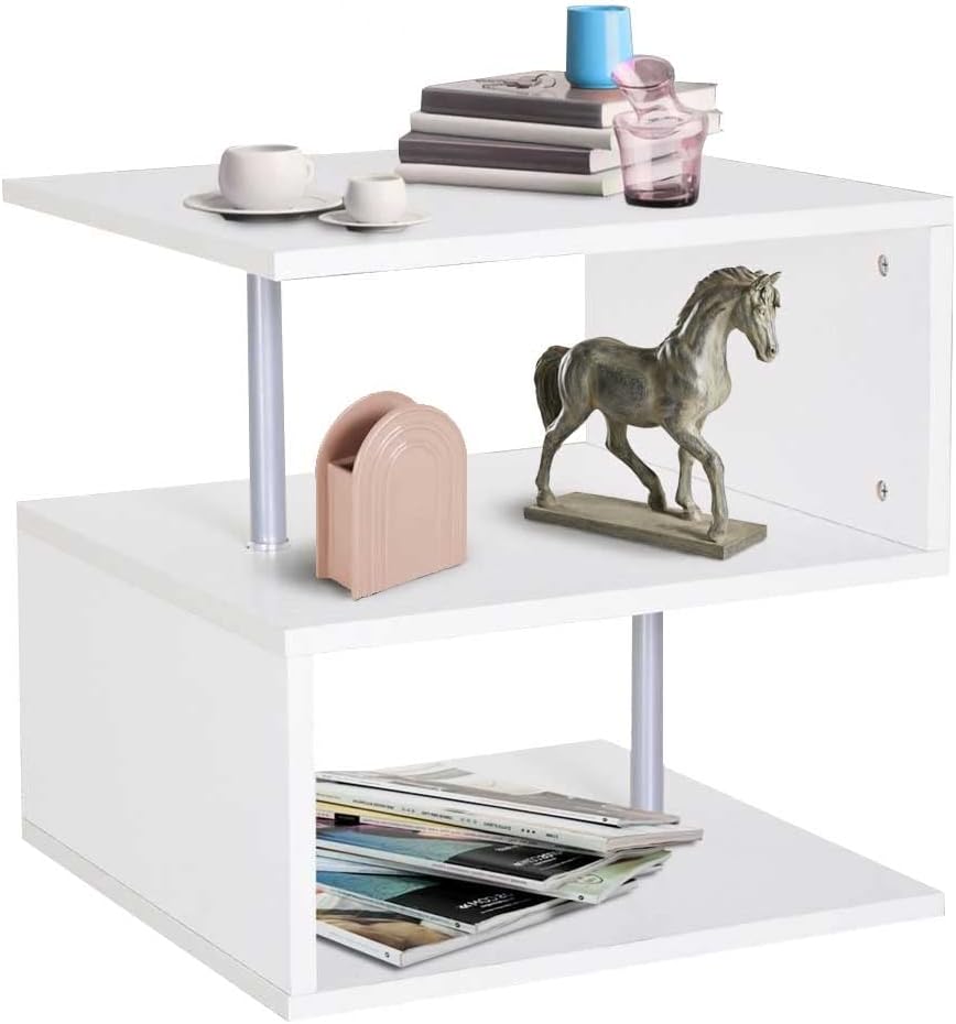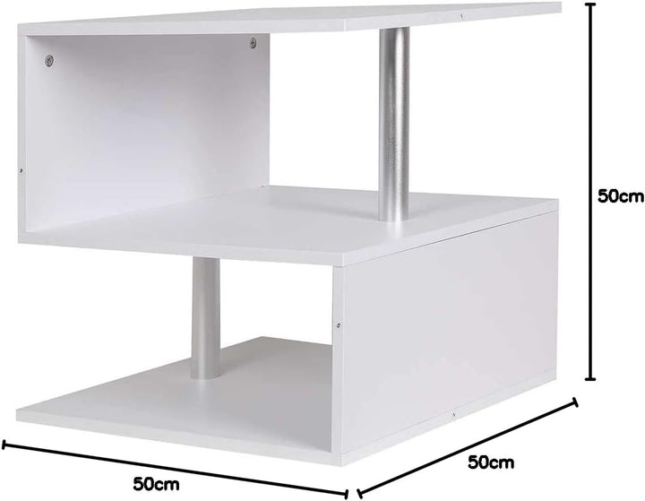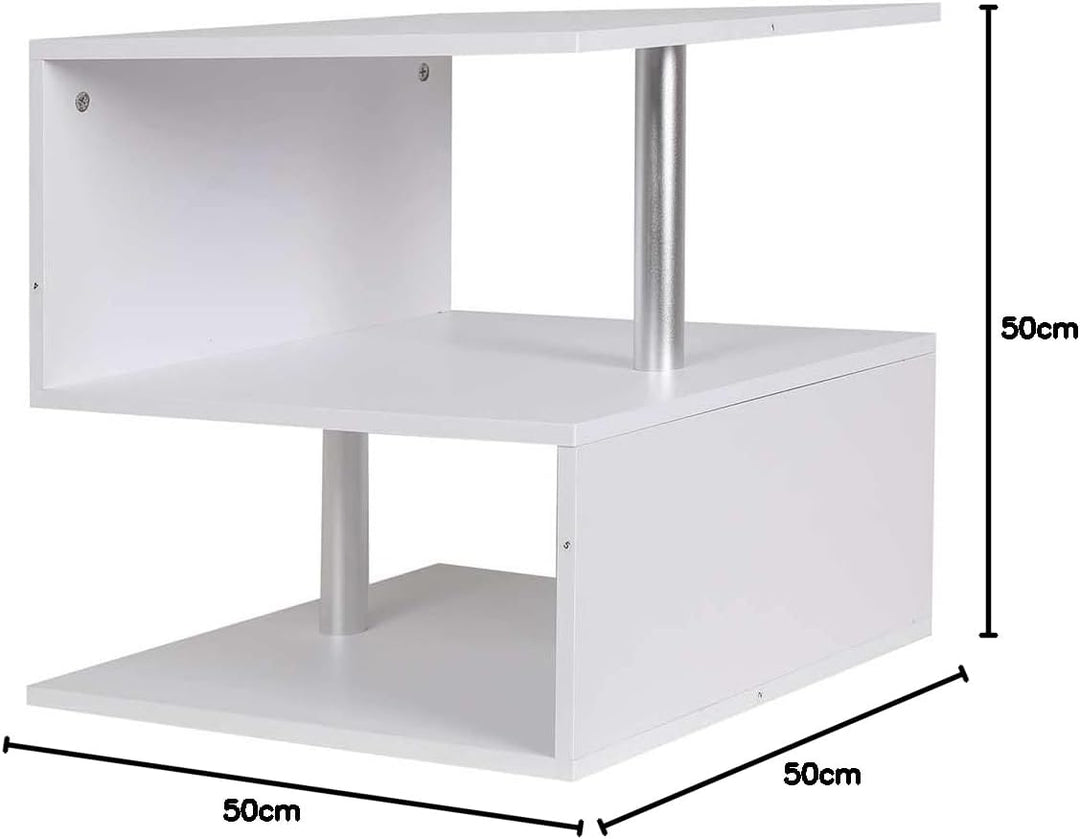 - Halten Sie Ihre Lieblingsbücher und Einrichtungsgegenstände immer ordentlich und werten Sie sie mit diesem wunderschönen modernen 3-stöckigen Couchtisch von Bakaji auf.