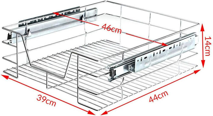 - Dieser praktische, ausziehbare Korb mit den Massen 46 x 44 x 14 cm (inklusive Schienen) passt perfekt auf Türen mit einer Aussengrösse von 50 cm und ist auch in jedem Raum wie Badezimmer, Küche Schlafzimmer usw. nützlich.