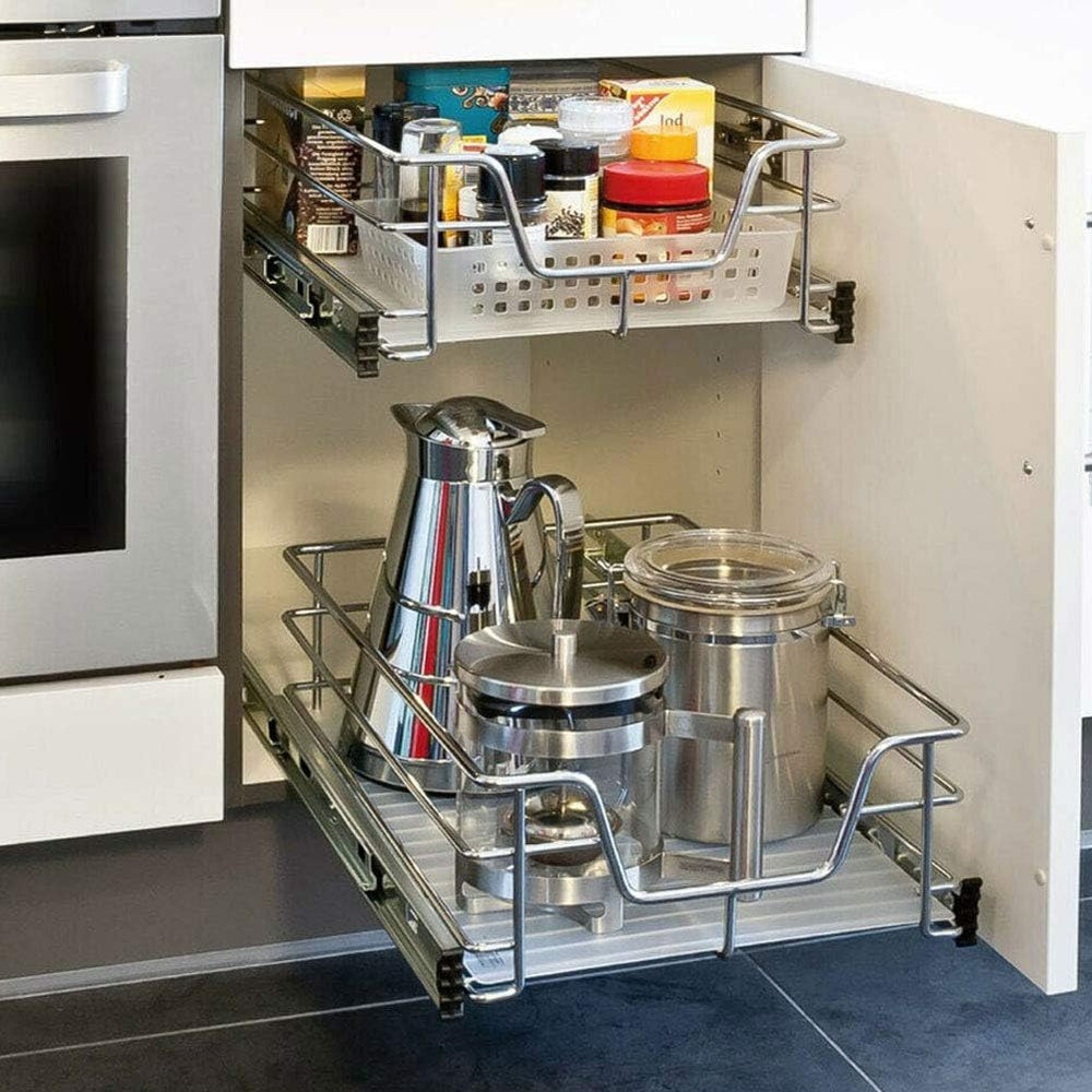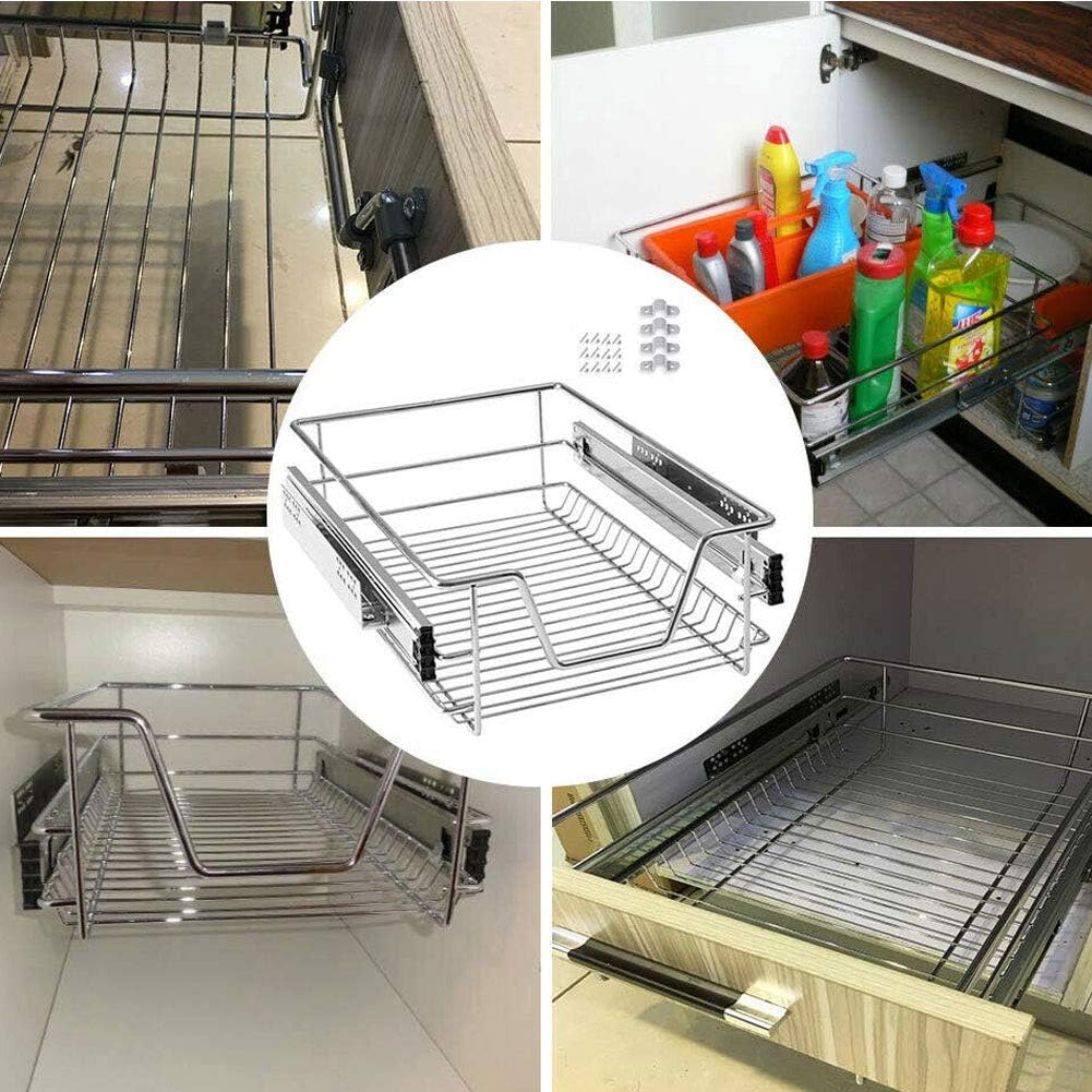 - Die Schublade ist komplett aus 5 mm dickem, verchromtem Edelstahldraht gefertigt, wodurch der Korb sehr robust und langlebig ist und eine maximale Traglast von 20 kg gewährleistet. Der Korb kann auch aus den Schienen herausgenommen werden, so dass Sie