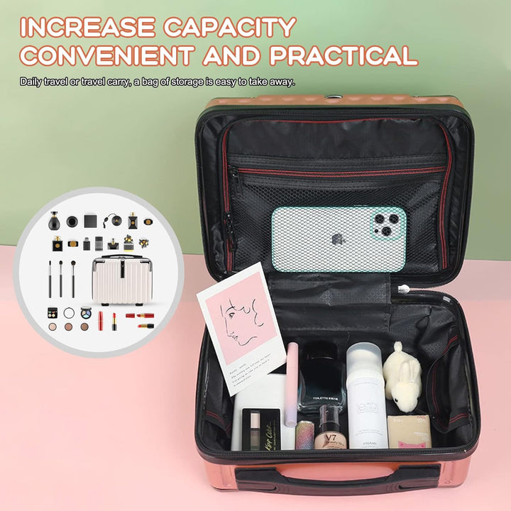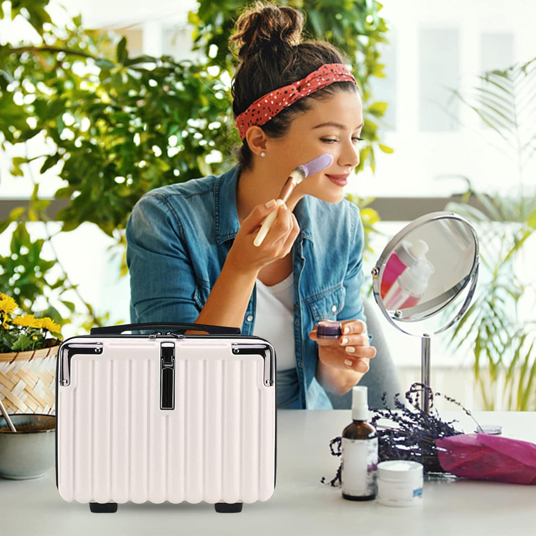 - Hochwertige Materialien: Tragbare Make -up -Beutel bestehen aus hochwertigen ABS -Materialien, sanft aber fest, was die Tragbarkeit erhöhen kann. Die glatte Oberfläche ist leicht zu reinigen und kann viele Jahre dauern.