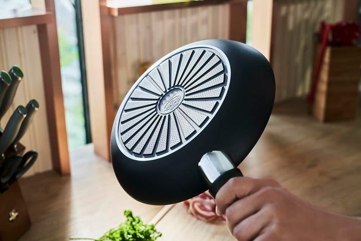 - Energiesparender Temperaturanzeiger im Griff für perfekte Bratergebnisse, Schnelle und gleichmässige Wärmeverteilung dank Boden aus Aluminium und Stahl
