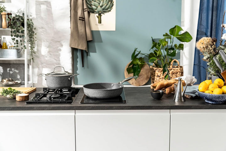 - Kochgeschirr für echte Geniesser: Schnell aufheizender Topf im Granit-Look Beschichtung ideal zum Braten und Kochen von One-Pot-Gerichten uvm.