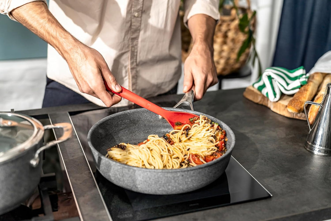 • Schnell aufheizendes Material aus geschmiedetem Aluminium für energieeffizientes Kochen, Langanhaltend kühler und ergonomischer Edelstahlgriff