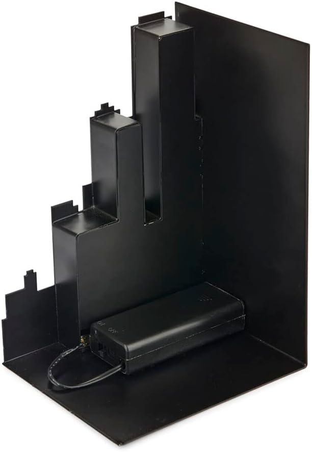 - ORIGINELL. Mit Beleuchtung! Diese Buchstütze simuliert die Gebäudeansicht, die bei Einbruch der Dunkelheit wirklich leuchten!