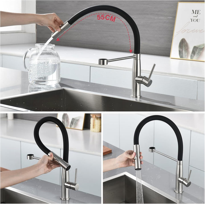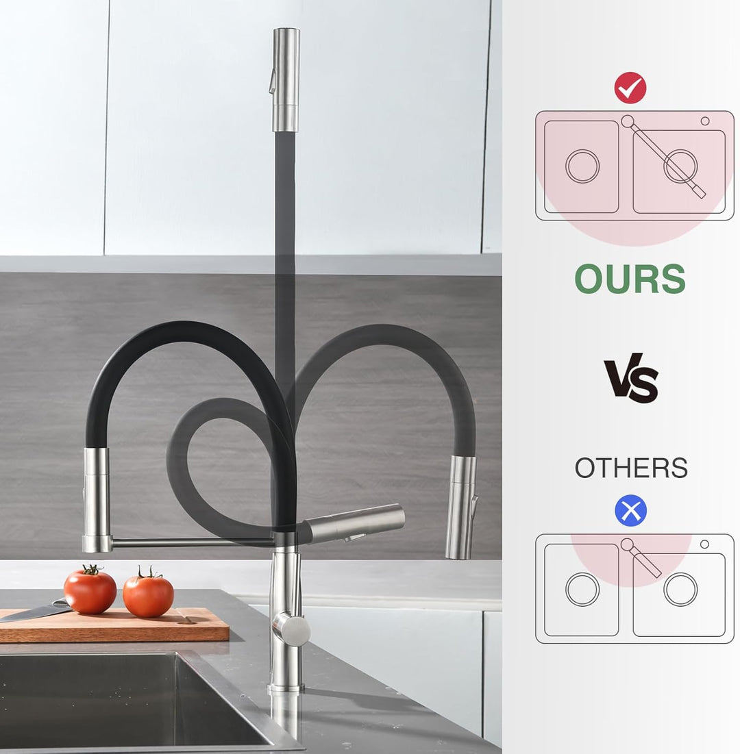 - Flexibler Wasserhahn Küche:spülarmatur verwenden flexible Silikonschläuche.armatur ist um 360°schwenkbar,so dass der Auslauf alle Teile der Küchenspüle leicht erreichen,weich und langlebig,Sie müssen sich keine Sorgen über Wasserflecken oder