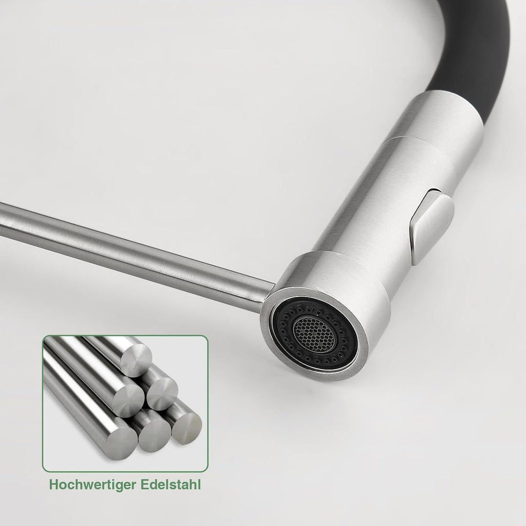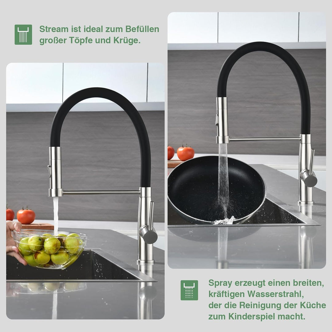 - Einzigartiges Design:mischbatterie küche ist aus robustem 304 Edelstahl Hauptteil und flexiblem Silikonschlauch gefertigt.Ideal für die Reinigung von Einbeckenspülen und Doppelspülen.das zu verschiedenen Küchenstilen passt