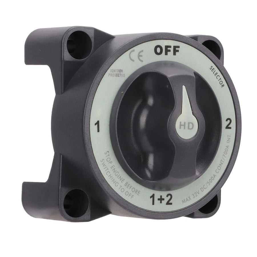 - Funktion: Das Kontaktdesign "Schliessen vor Öffnen" ermöglicht das Umschalten zwischen Batteriebänken ohne Stromunterbrechung mit einer Dauerleistung von 500 Ampere.