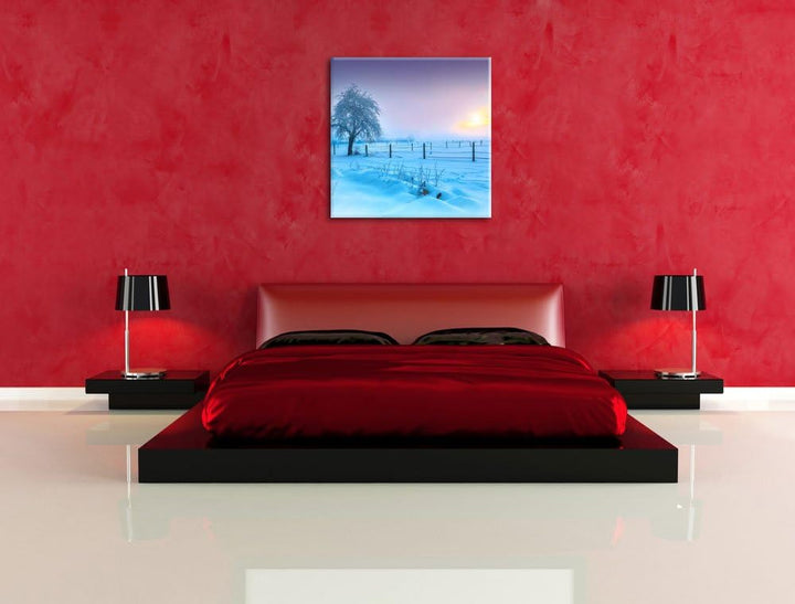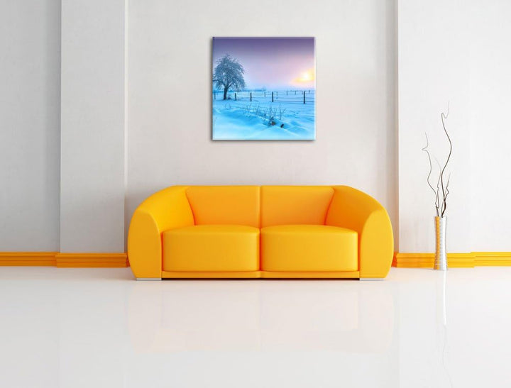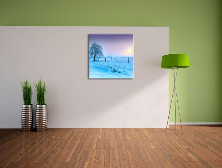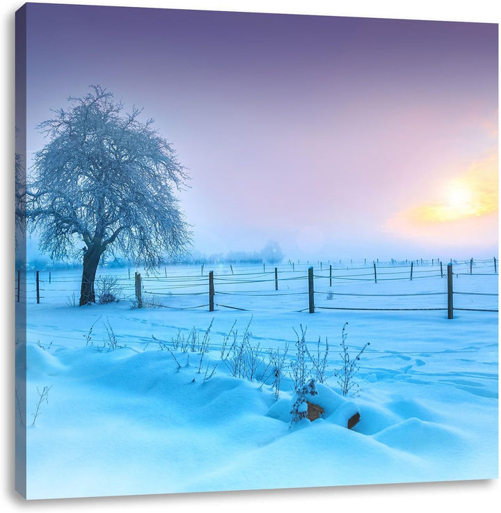 Baum in Winterlandschaft, Format: 70x70 auf Leinwand, XXL riesige Bilder fertig gerahmt mit Keilrahm