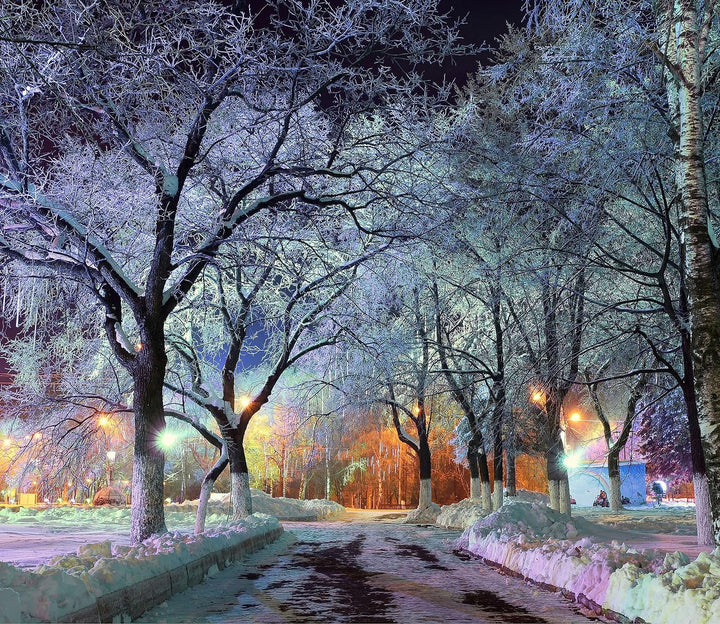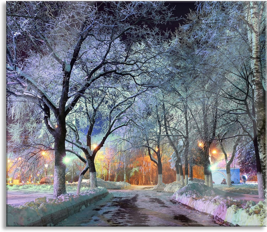 Baumallee im Winter Herdabdeckplatte & Spritzschutz aus Echtglas | Für Herd-Kochfelder | 60x52 cm