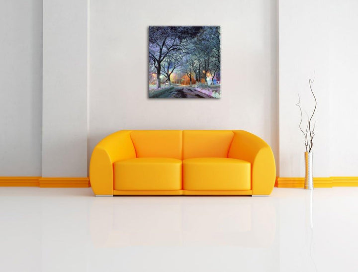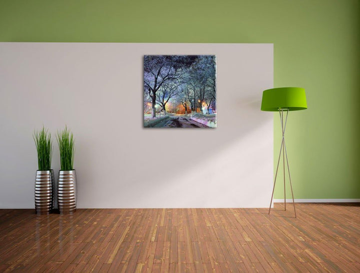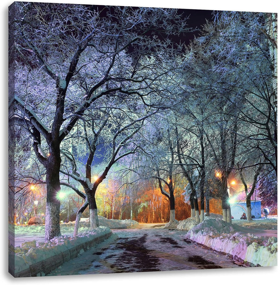 Baumallee im Winter, Format: 70x70 auf Leinwand, XXL riesige Bilder fertig gerahmt mit Keilrahmen, K