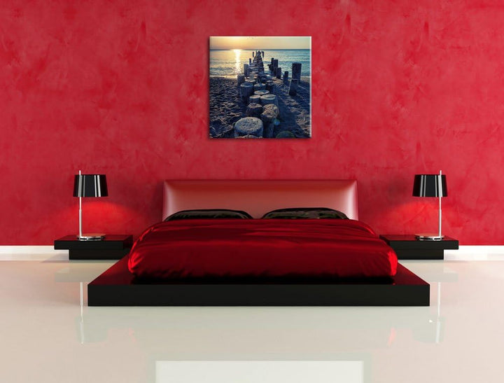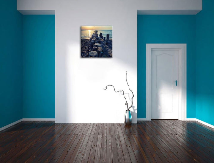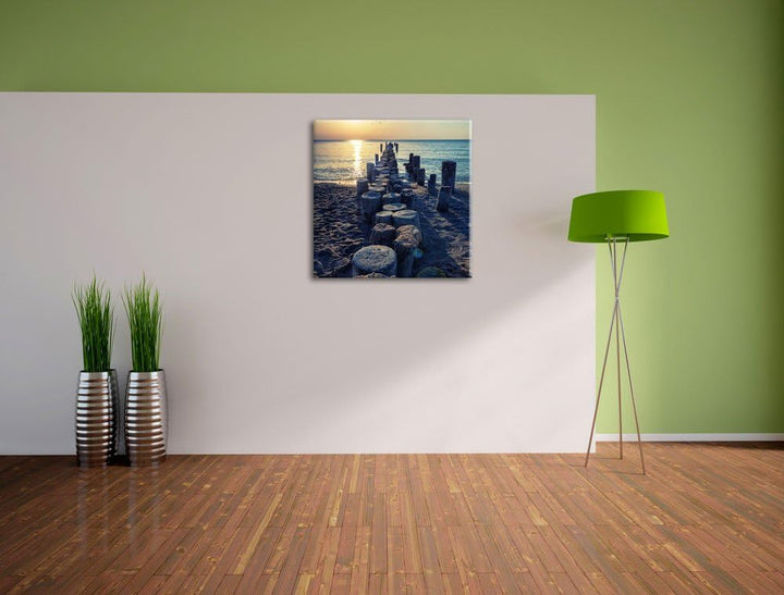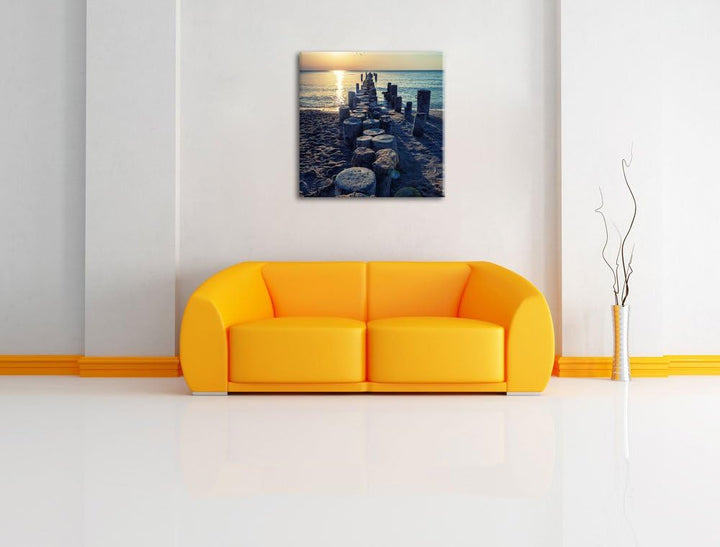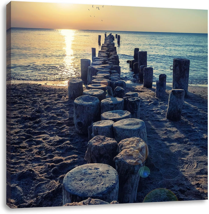 Baumstümpfe am Meer, Format: 70x70 auf Leinwand, XXL riesige Bilder fertig gerahmt mit Keilrahmen, K