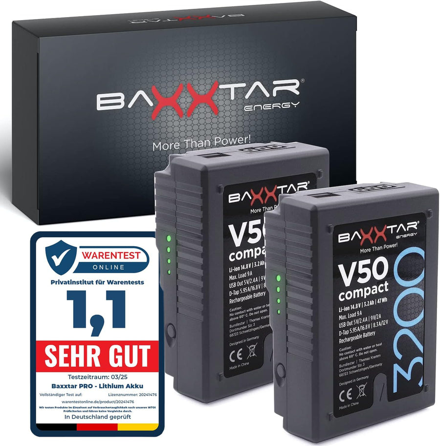 - COMPACT-SERIE: Die PRO Akkus sind die neueste Entwicklung aus dem Hause Baxxtar und für den professionellen Einsatz konzipiert (klein, leicht, stark). Passt gut in die Hand