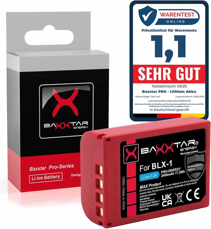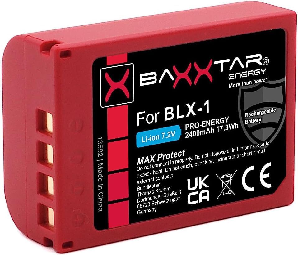- Baxxtar MaxProtect V1, Ersatz für Akku Olympus BLX-1 // Ein echtes Kraftpaket. Beste Zellen machen ihn stark und langlebig.