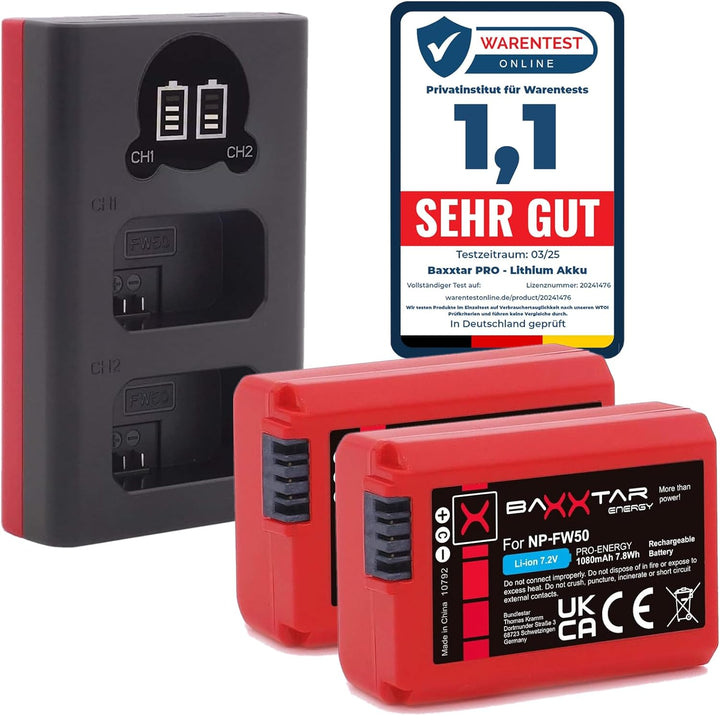 - AKKU: 2x Baxxtar Pro - Qualitätsakku für NP-FW50. Intelligentes Akku-System mit Chip-Technologie. Lithium-Ionen Akku mit Überladungs-/Überspannungsschutz