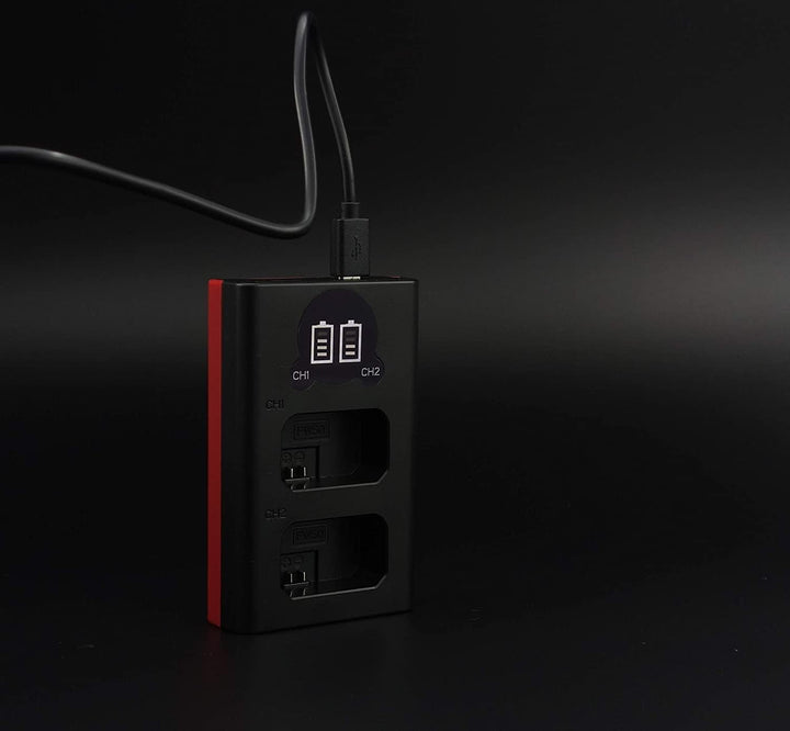• LADEGERÄT/VORTEIL: MicroUSB und USBC-Eingang. Dem USB-C Eingang gehört die Zukunft / LCD Balkenanzeige / Input 5V 2100mA / Output 700mA Ladestrom (1x Akku) und 500mA (2x Akku)