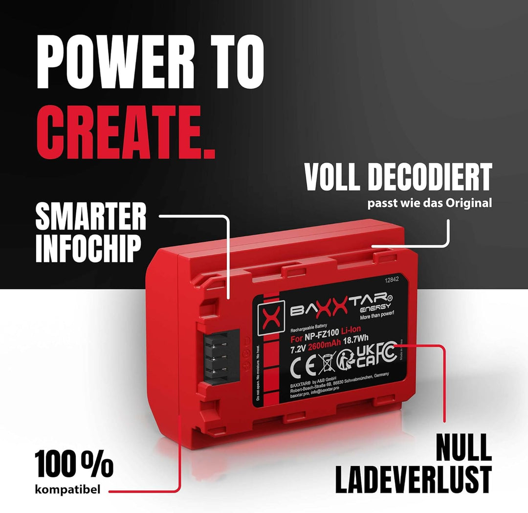 - GENERATION IV: Ersatz für Sony NP-FZ100. Intelligentes Akku-System mit Chip-Technologie.