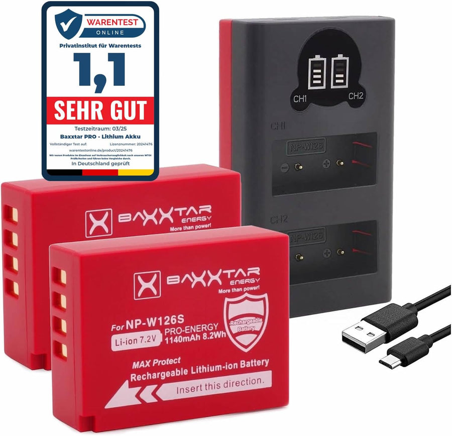 - Der Baxxtar MaxProtect V1, ersetzt den Akku Fuji Fujifilm NP-W126s NP-W126