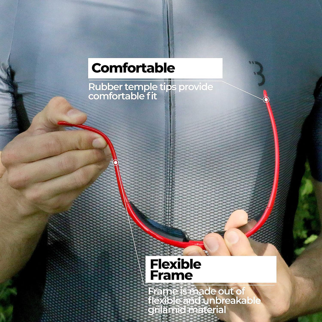 - Lieferumfang: 1 x BBB Cycling Impress BSG-58 Fahrradbrille in Gläzend Rot / Klassische Sportbrille für Damen und Herren / Mit drei austauschbaren Gläsern / 100 % UV-Schutz