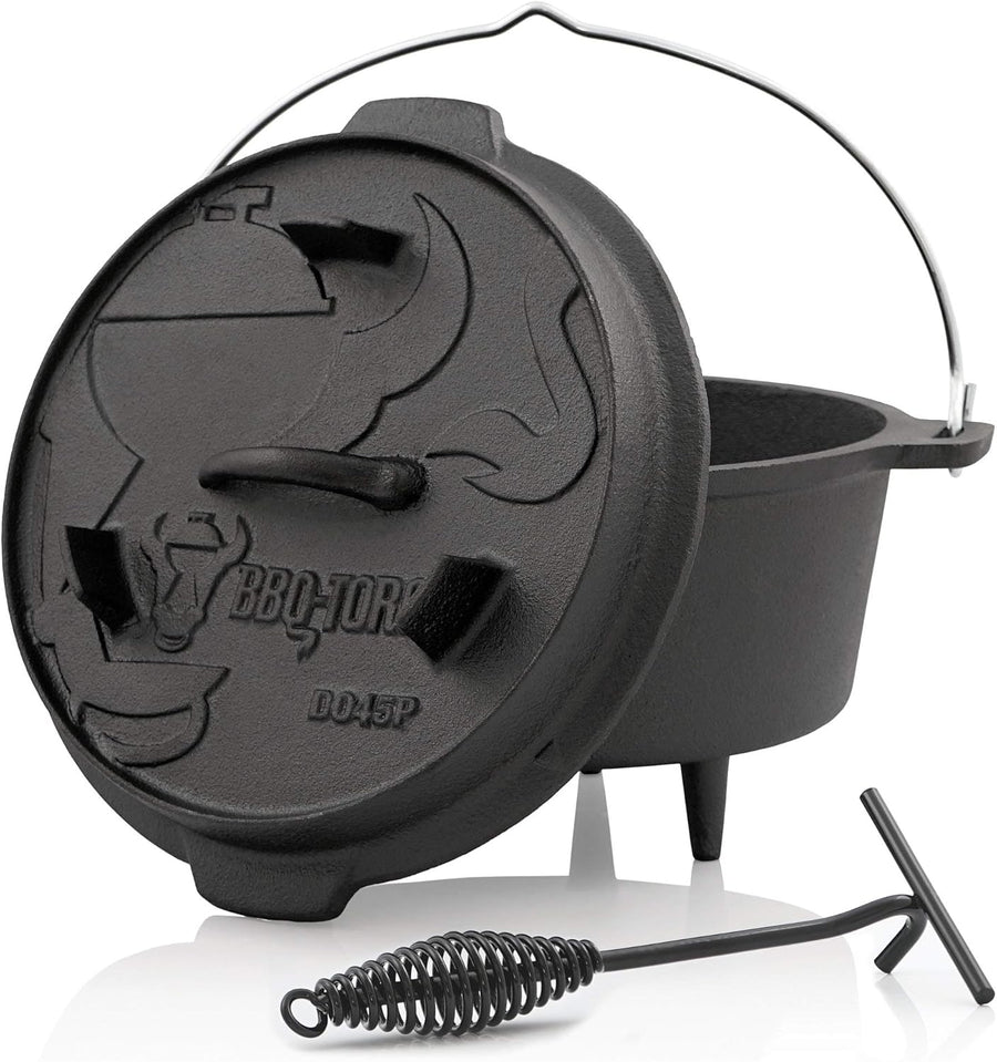 - BEREITS EINGEBRANNT I Die Dutch Oven von BBQ-Toro sind bereits eingebrannt und können sofort genutzt werden. Dem Lieferumfang liegt eine detaillierte Anleitung bei, sollte nach Nutzung ein erneutes Einbrennen notwendig sein.