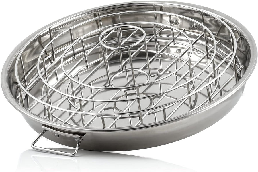 - PRAKTISCHE AUFFANGSCHALE | Diese fängt Grillsaft auf und das Fleisch liegt nicht im Fett, so entsteht keine lästige Rauchentwicklung. Grill und Backofen bleiben sauber. Ausserdem können Sie Ihr Gemüse gleichzeitig garen. Zudem ist die Schale auch als