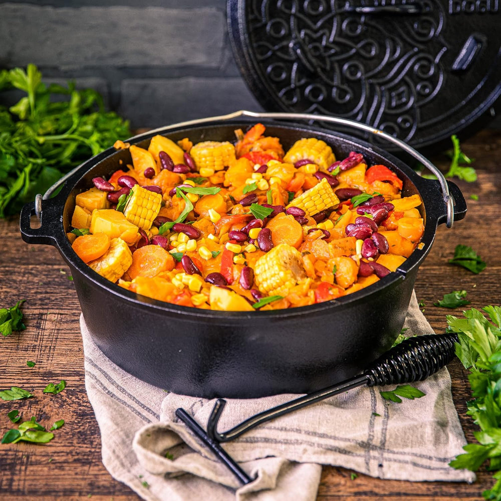 - WAS IST DER DUTCH OVEN? | Ein schwerer, traditioneller, gusseiserner Topf und ein exakt passender Deckel mit dem man überall kochen, braten, schmoren, frittieren, dünsten und backen kann. Egal ob Feuerstelle, Grillplatz oder Lagerfeuer, er ist mobil